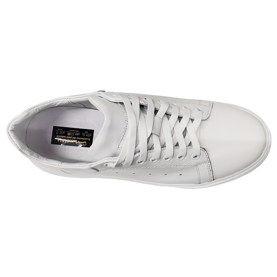 Pantofi Sport Barbatesti Albi Din Piele Naturala, Talpa Moale Din Poliuretan, Bot Rotund, Design Simplu, Usor De Asortat, Produs Romanesc, SCV, Marimea 43