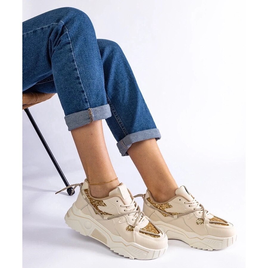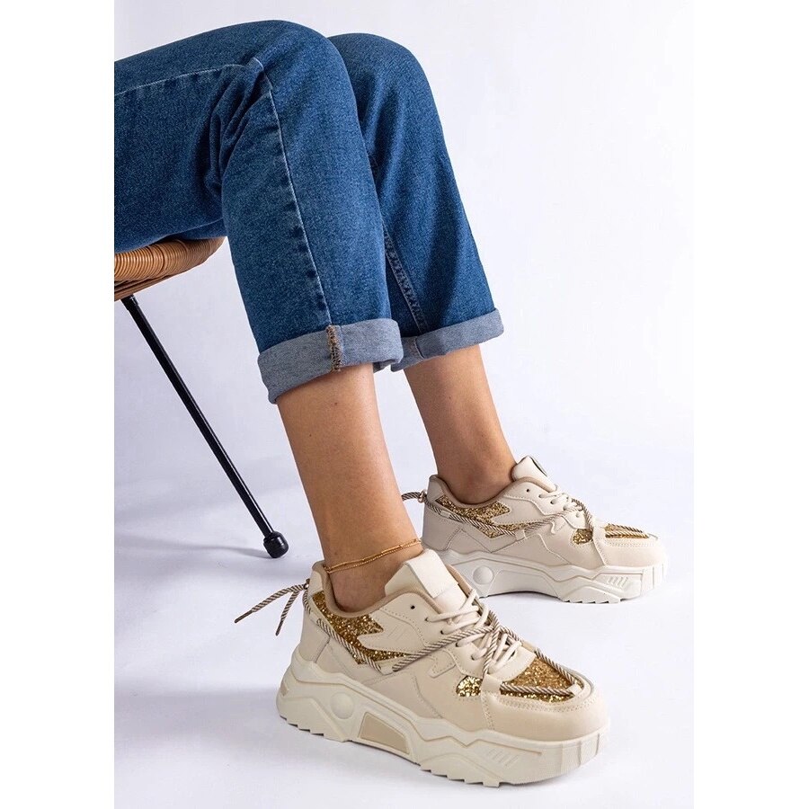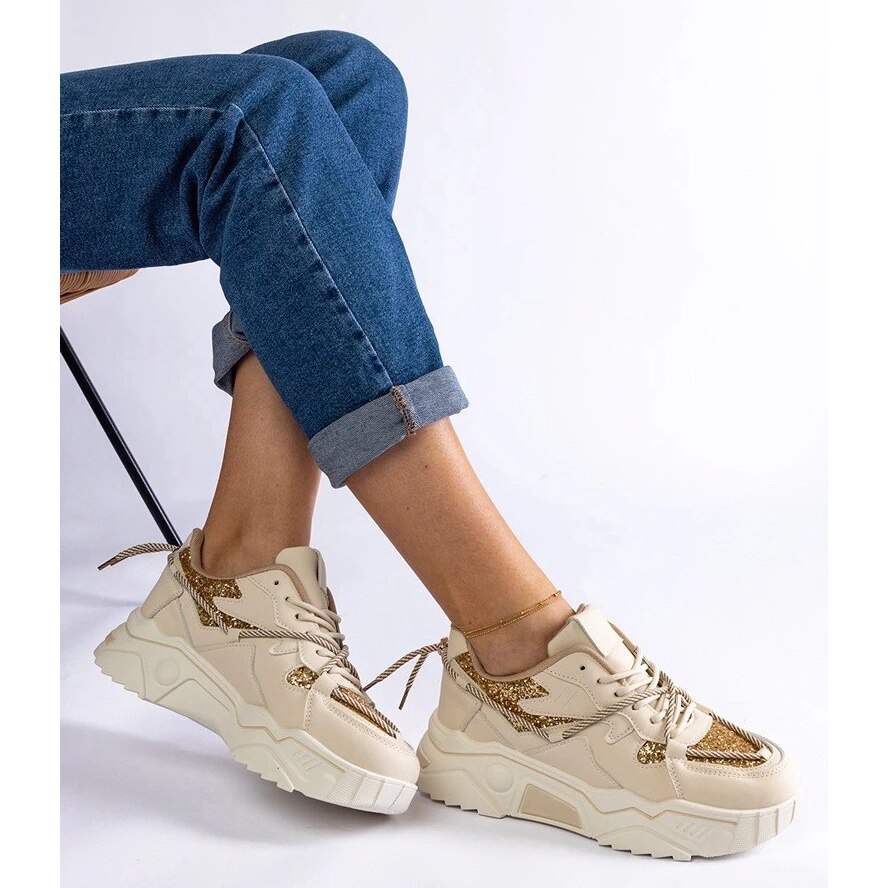 Pantofi sport bej pentru femei cu sclipici Agar piele ecologica 36 EU