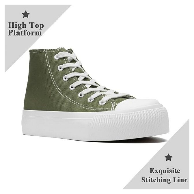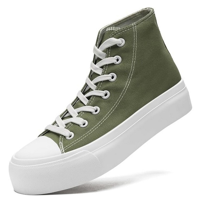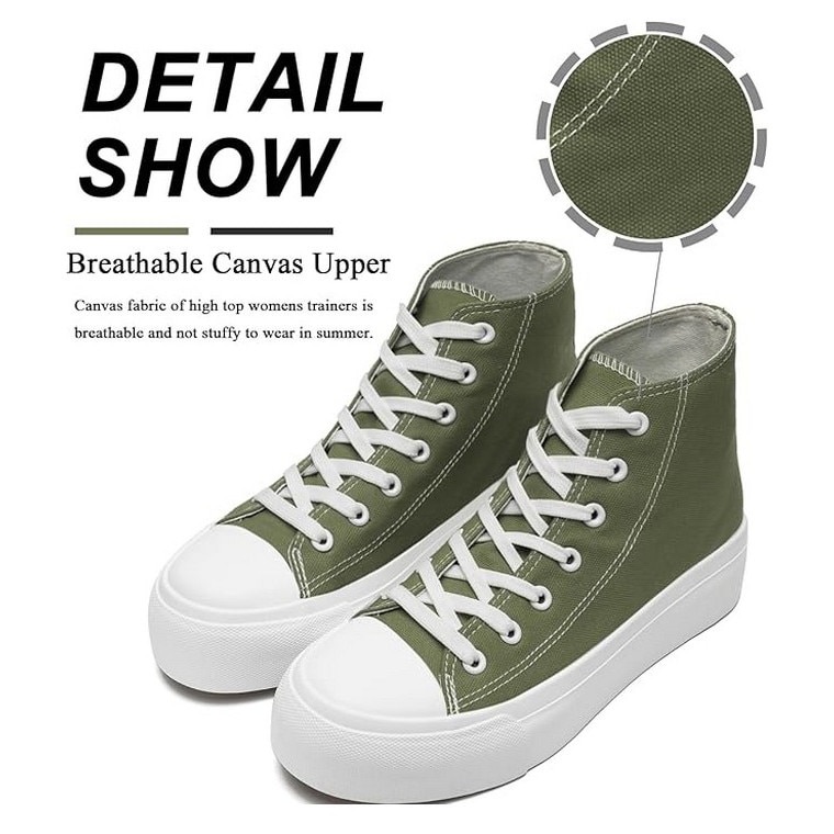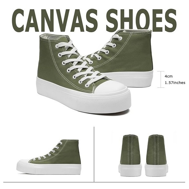 Pantofi sport din panza pentru femei, cu platforma inalta, kaki, Maxvinci, Kaki