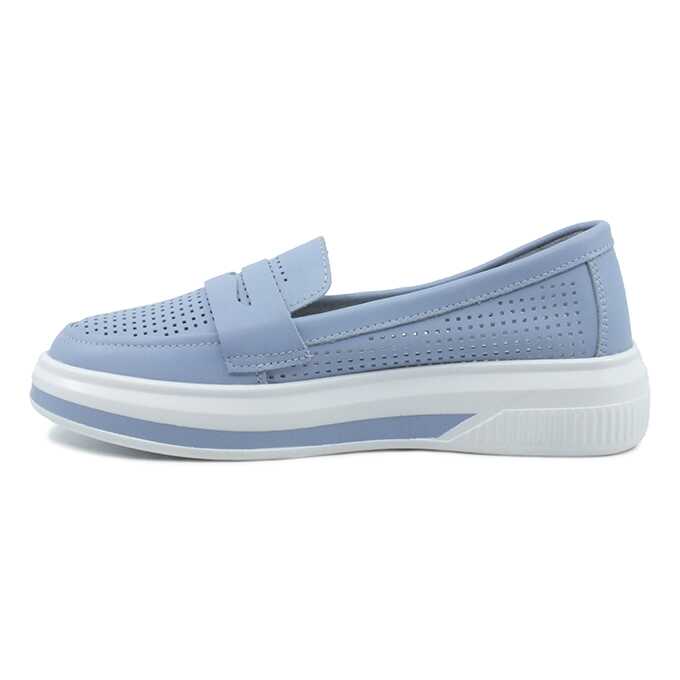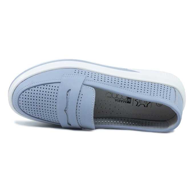 Pantofi vara, din piele naturala, pentru femei Maria Conti, cu perforatii, cu talpa groasa, Albastru, 39 EU