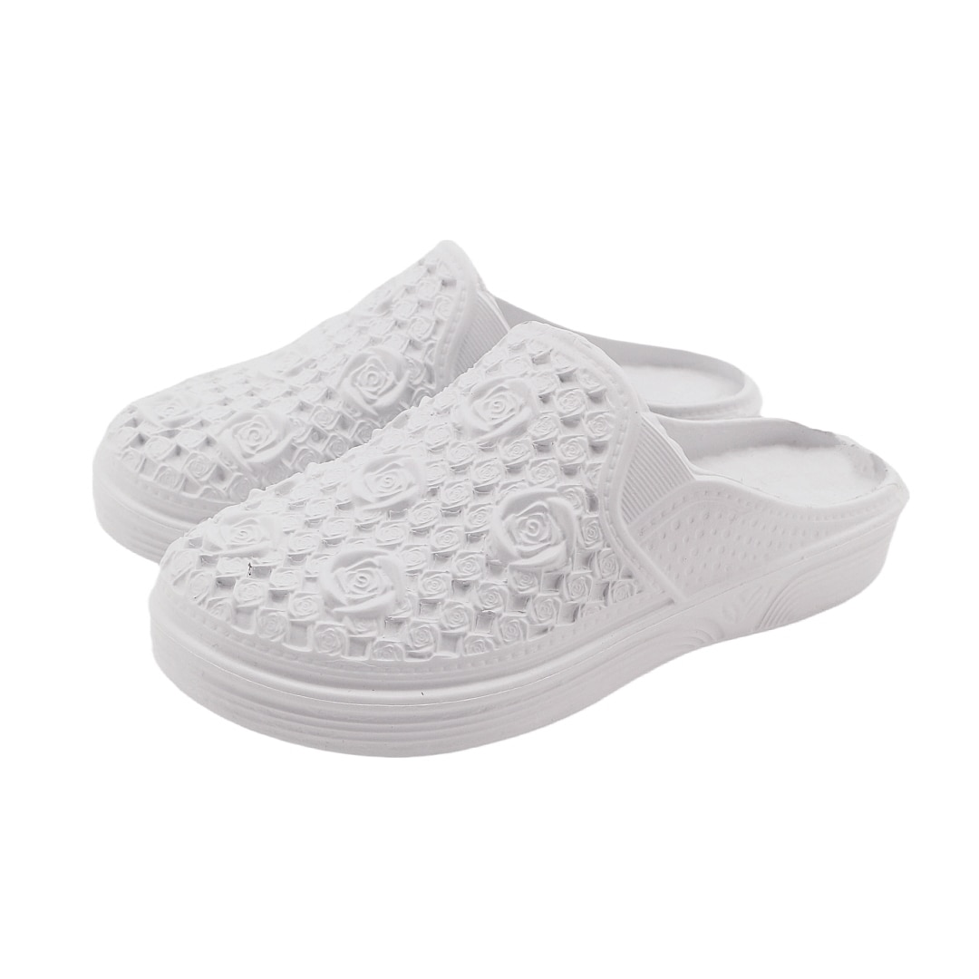 OEM - Papuci casual dama, cu model floral, A76, alb, 40