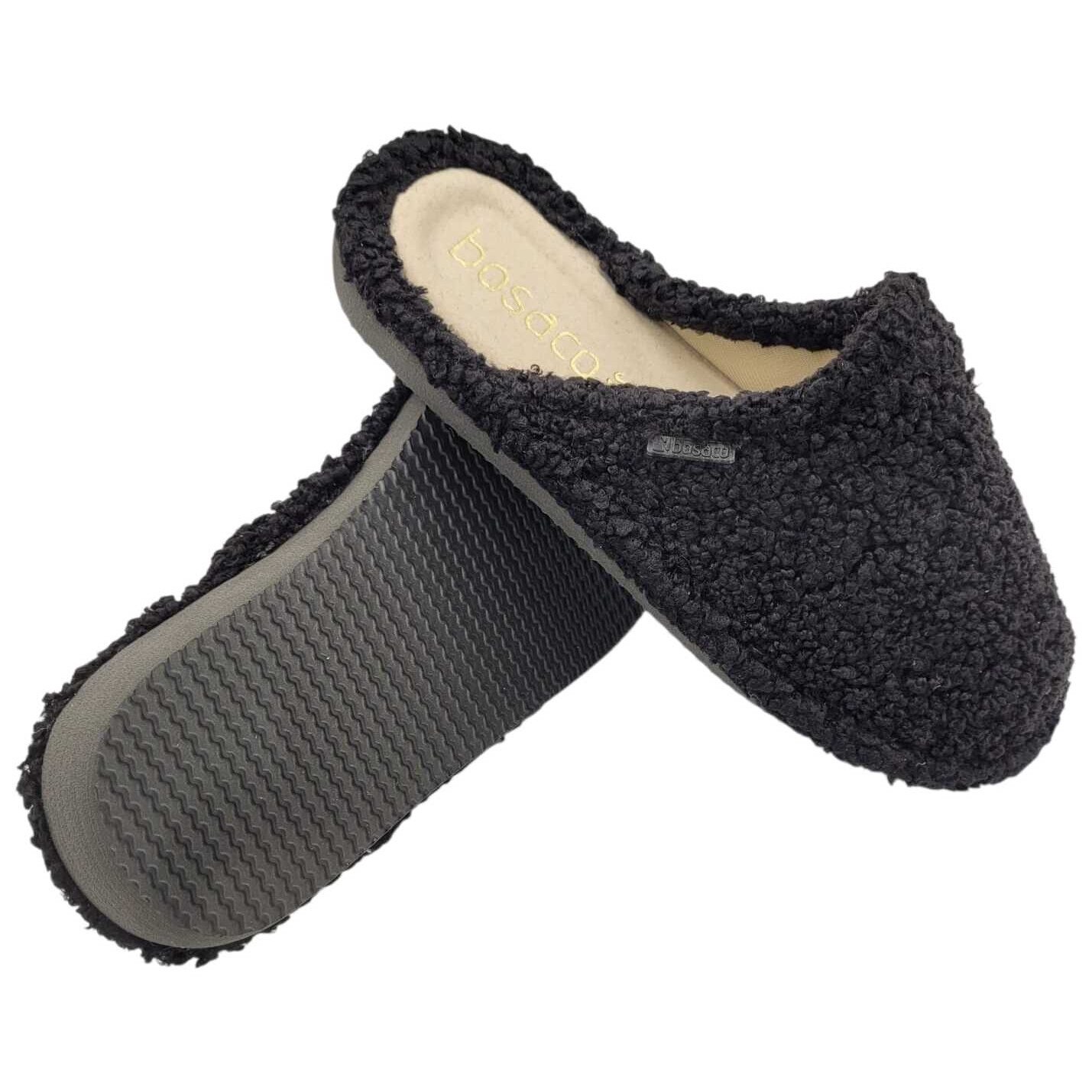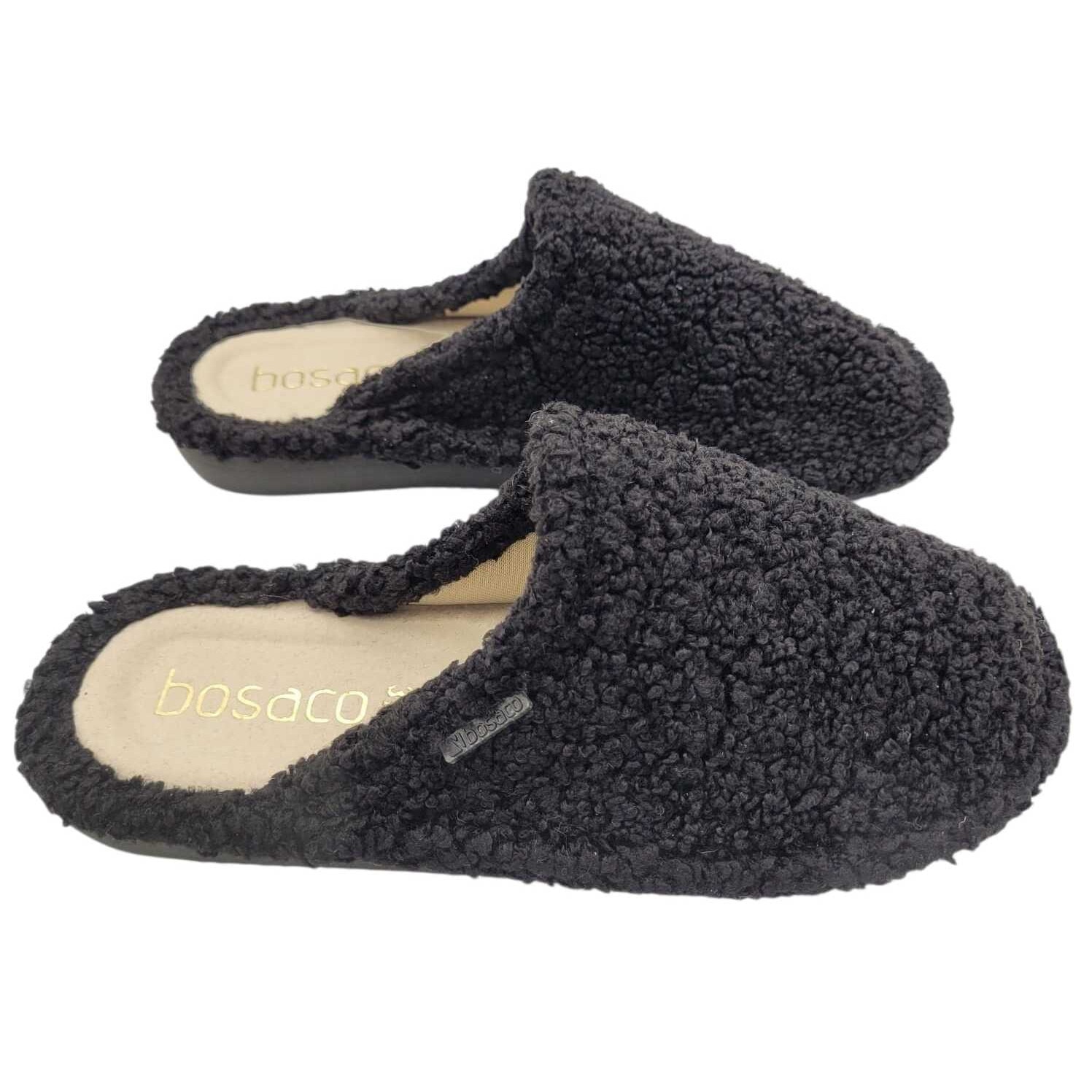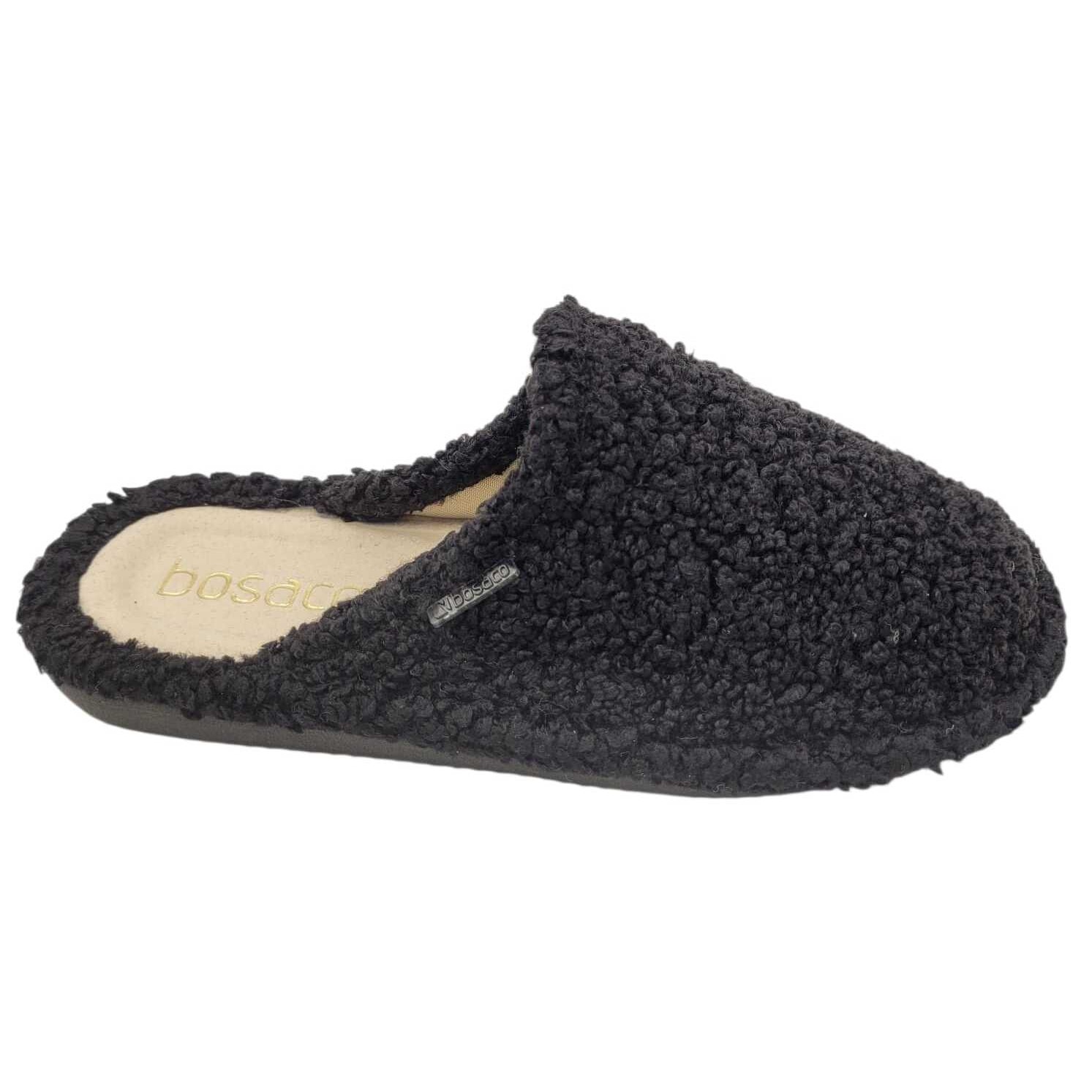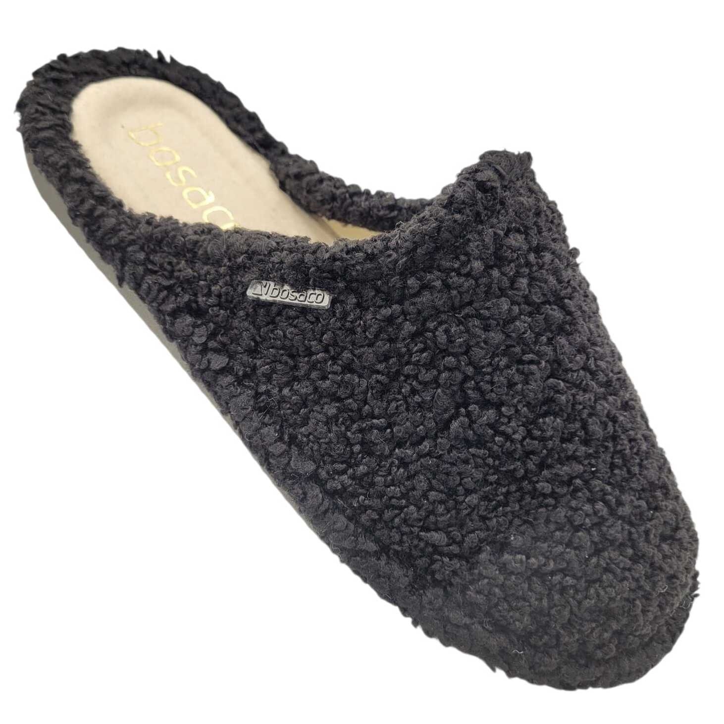 Papuci dama negri – incaltaminte de casa confortabila, din material pufos cu brant din piele naturala, Bosaco 36