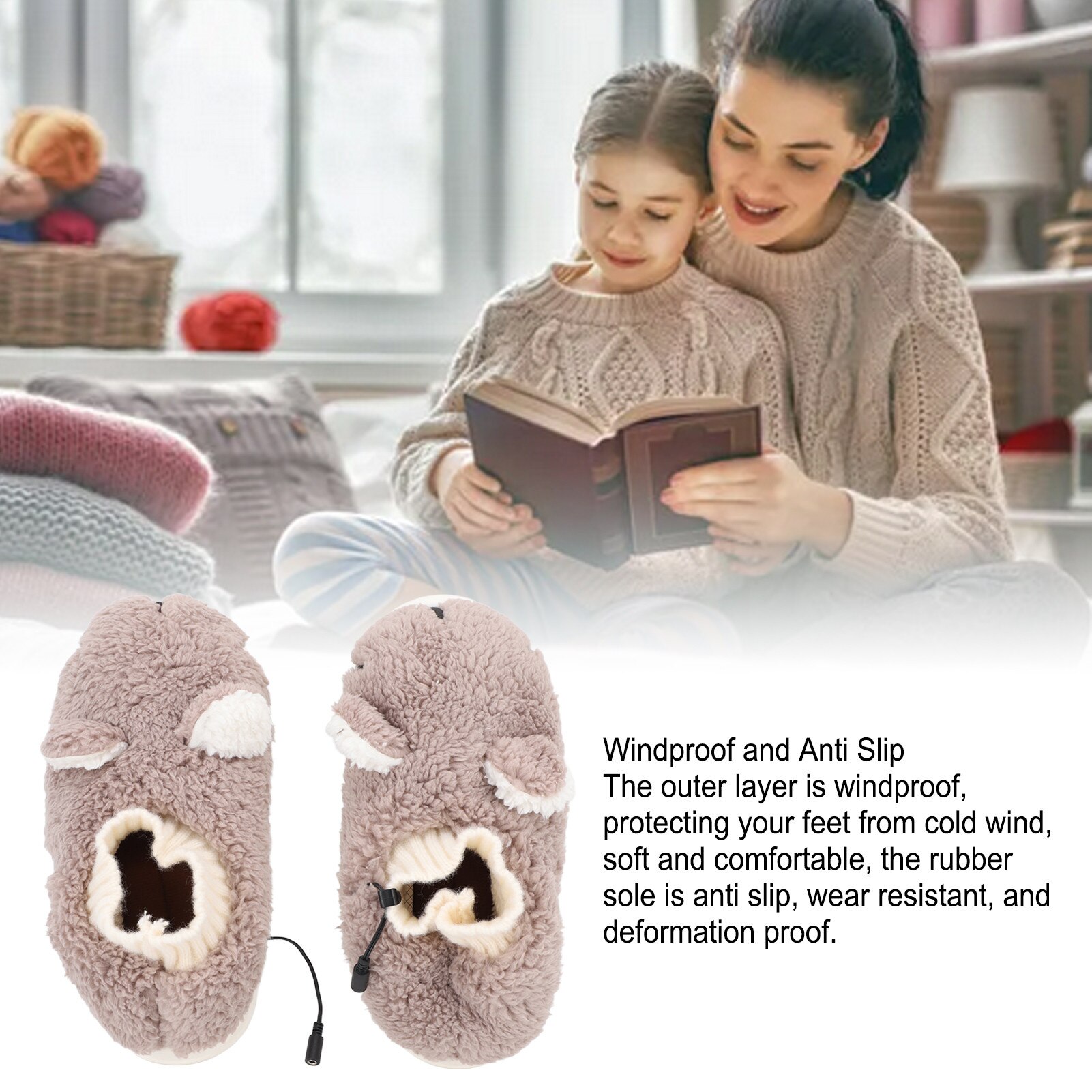 Papuci electrici incalziti, captusiti cu flanel, cu incalzire USB, 3 viteze, antiderapant, multicolor, pentru interior/exterior