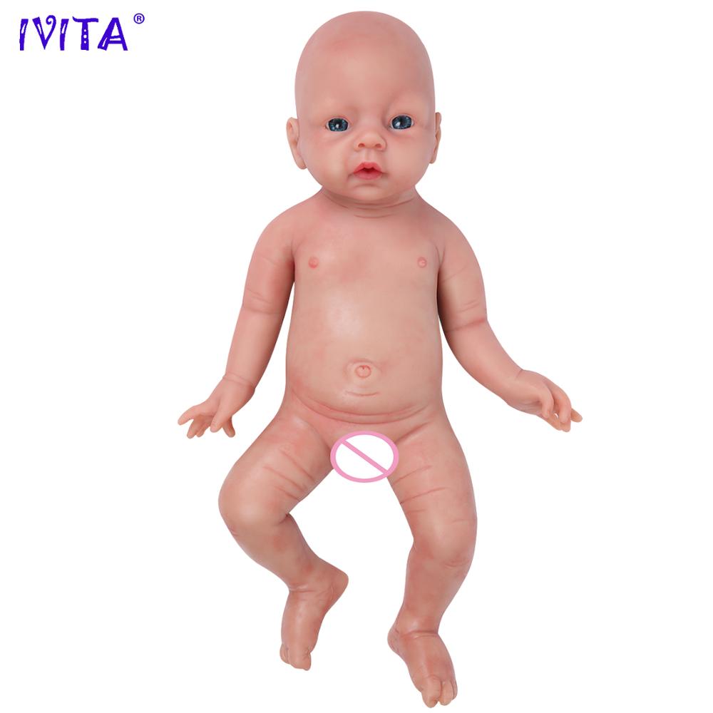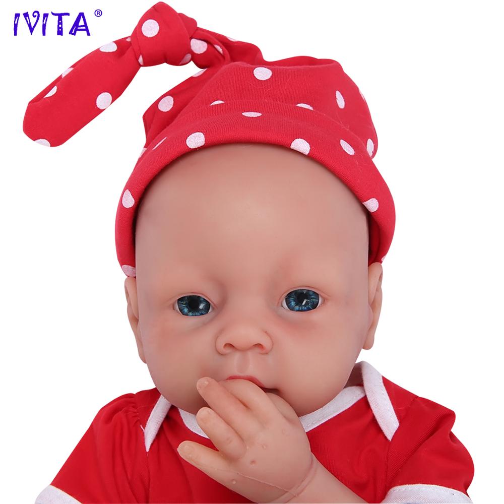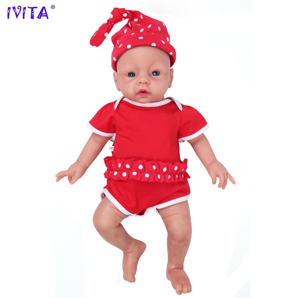 Papusa Reborn IVITA, Silicon de Calitate, Corp Ponderat, Bej, Ochi Albastri, 51 cm