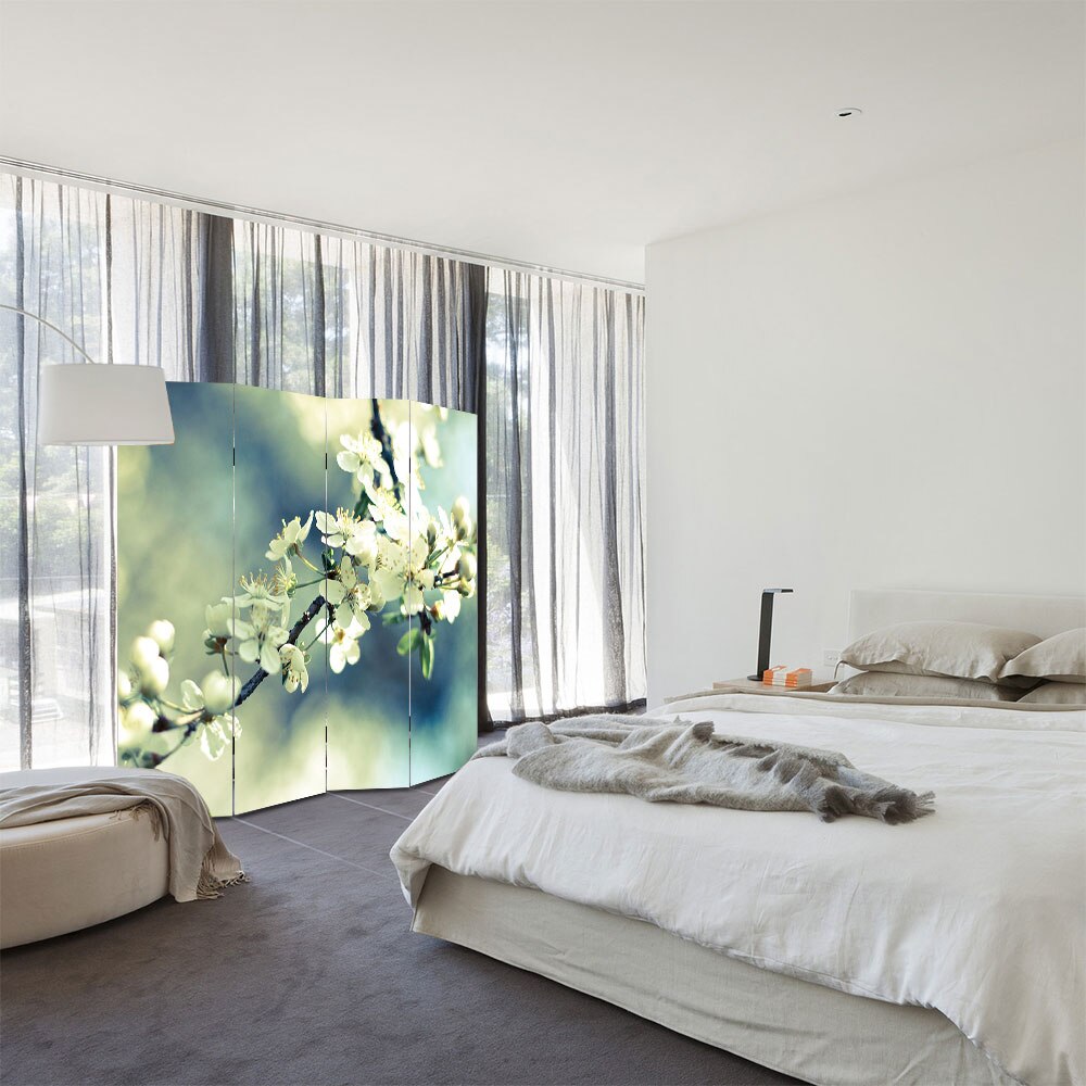 Paravan 4 piese Premium Heartwork TrueColor, Crenguta de copacel, Panza pe cadru de lemn, Decoratiuni Moderne pentru Casa, 4 Panouri de 45x150, 180 x 150 cm