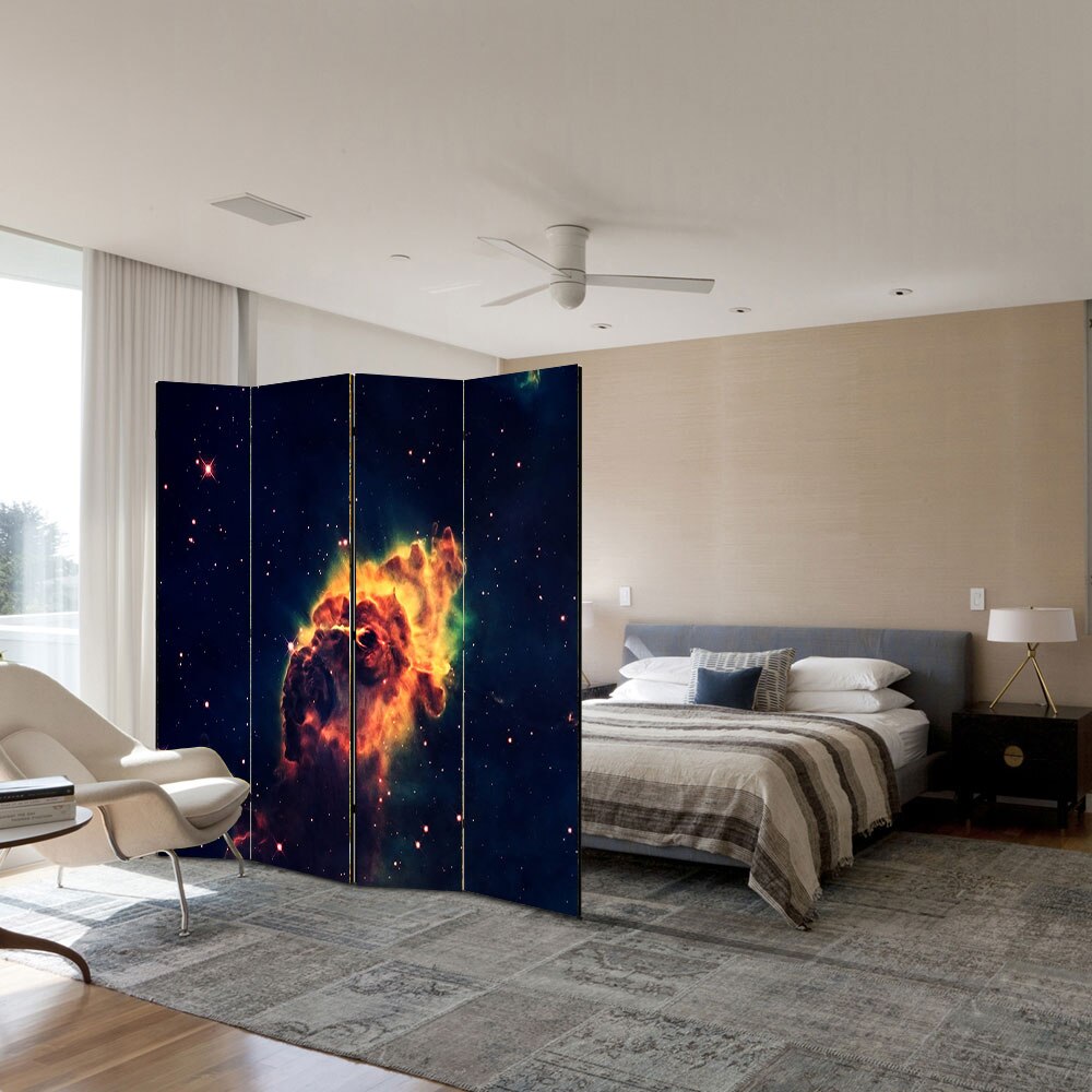 Paravan 4 piese Premium TrueColor, Art Star, Explozie in spatiu, Panza pe cadru de lemn, Decoratiuni Moderne pentru Casa, 4 Panouri de 35x150, 140 x 150 cm