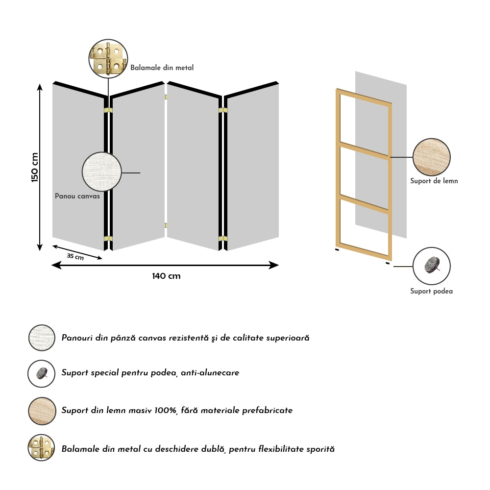 Paravan de Camera ArtDeco din 4 Panouri Peisaj De la roz la albastru 140 x 150 cm