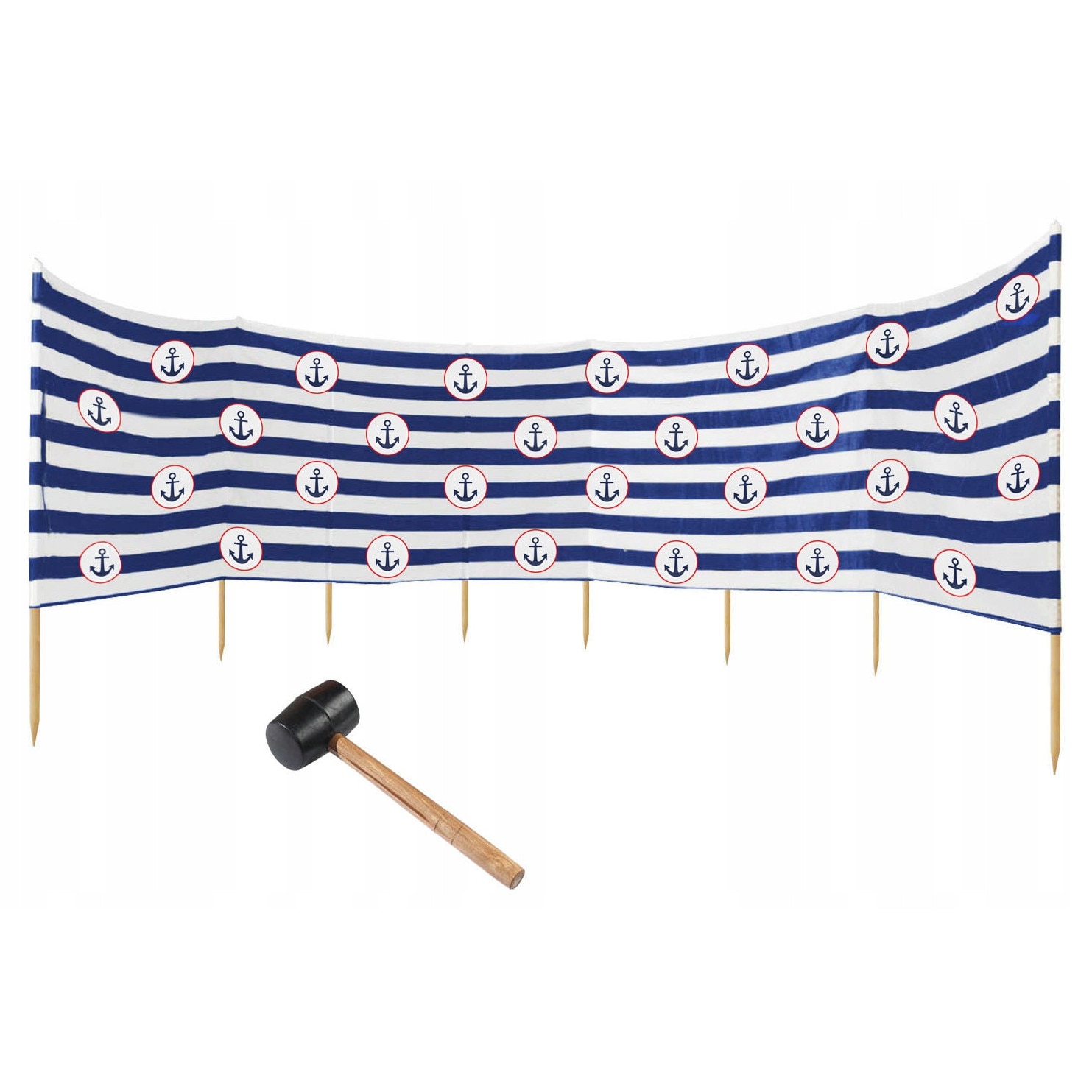 Paravan De Plaja Cu Ciocan, Feronerie, Bastoane 100% Lemn de Pin (100x2cm), Tesatura 100% Bumbac, Pliabil Tip Geanta (Curea de Umar), 1000 cm x 80 cm