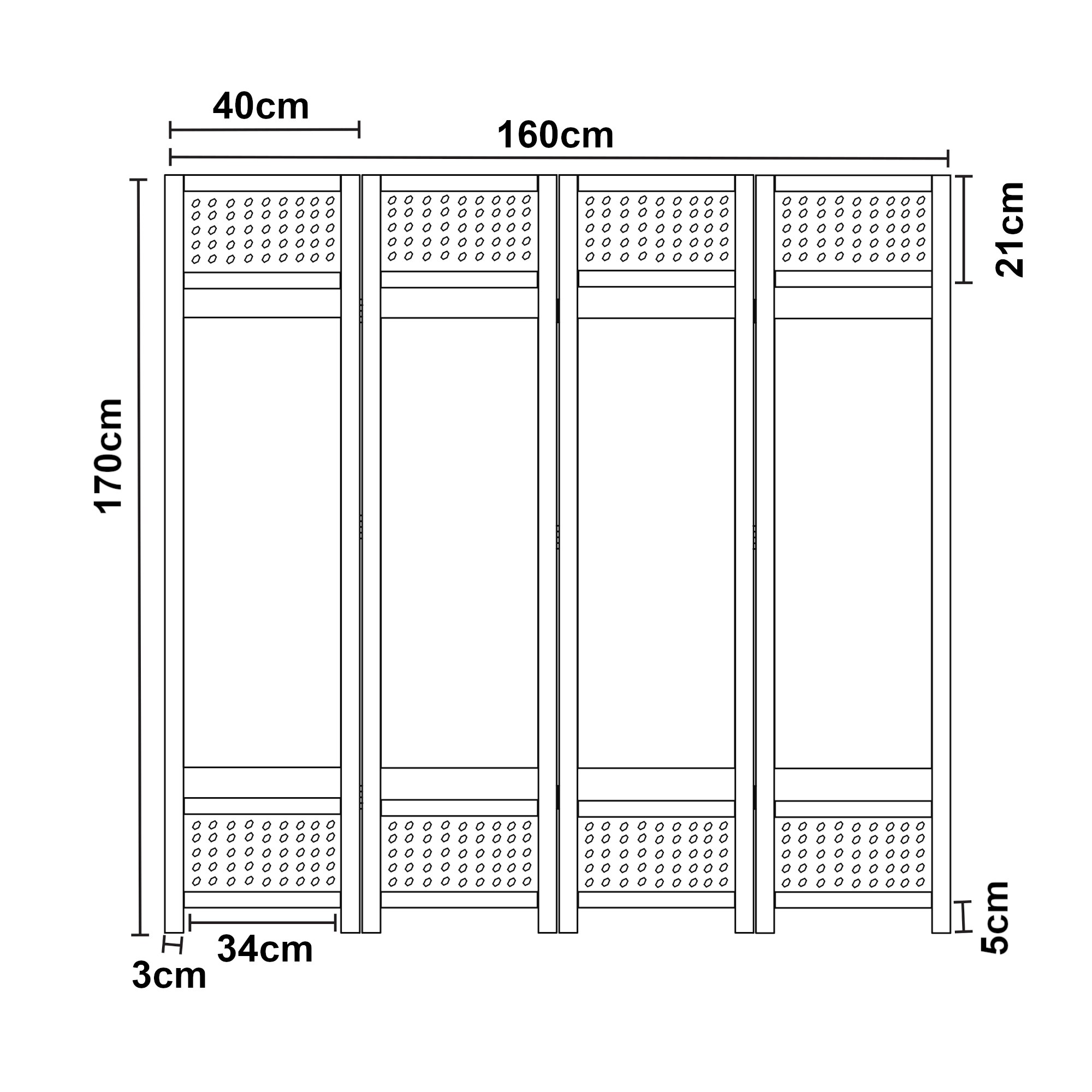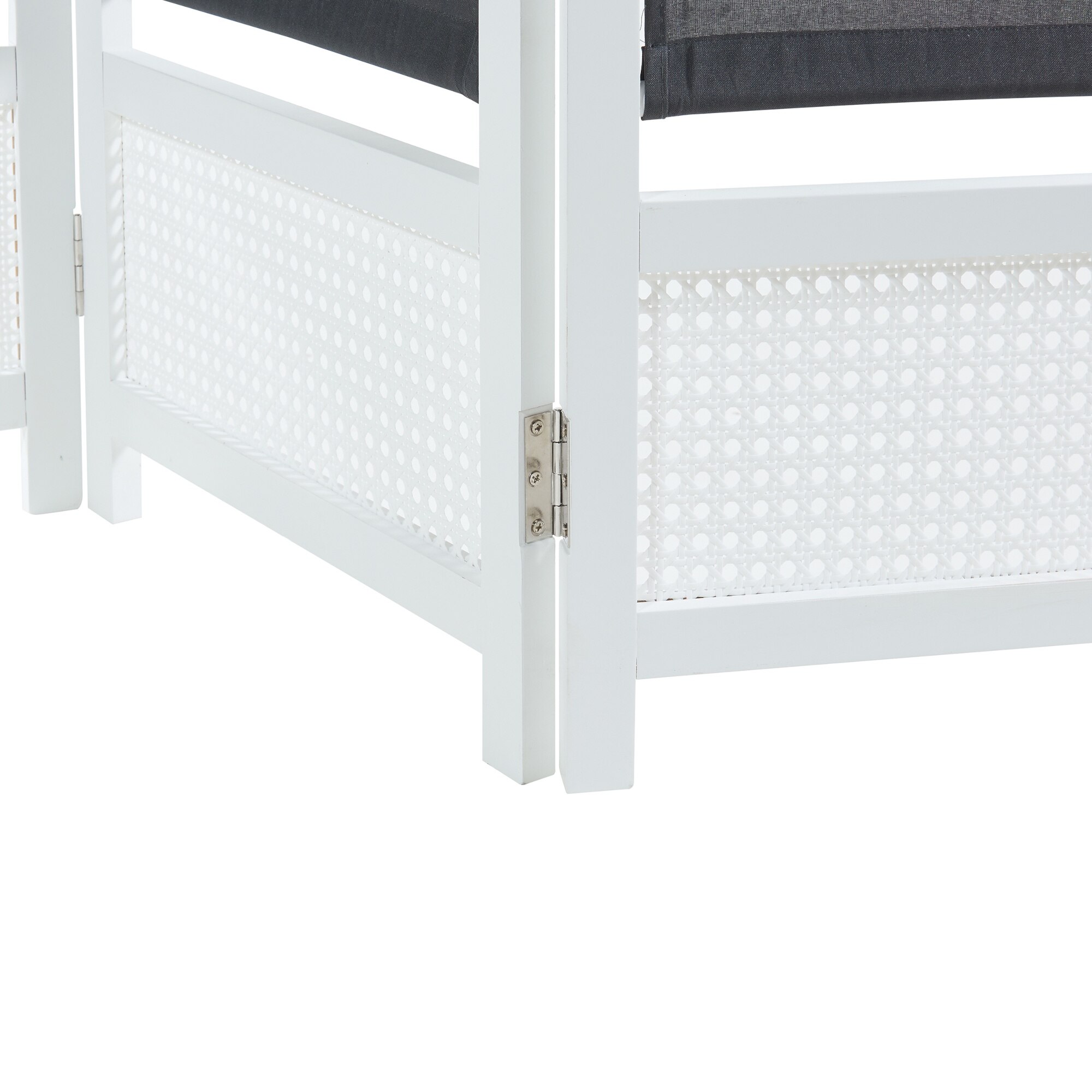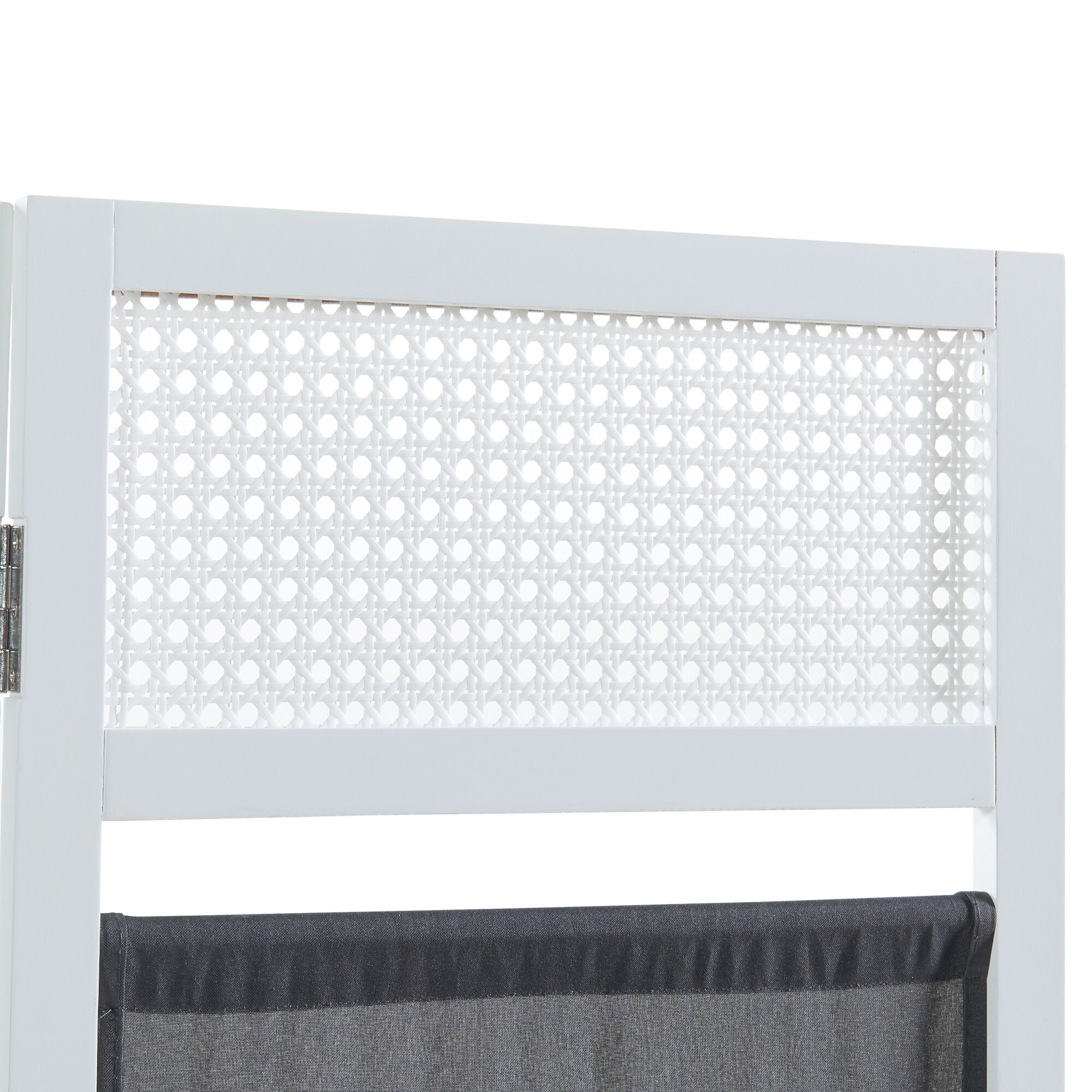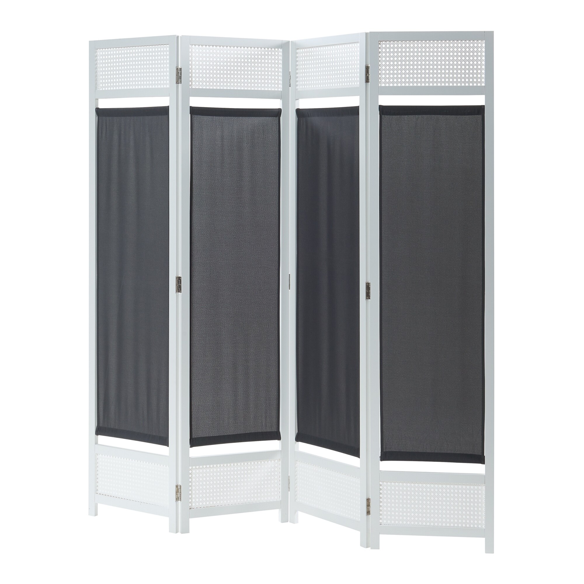 Paravan, en.casa, Dorotea, 160 x 170 cm, bambus, pvc, poliester, alb, gri inchis, cu 4 panouri