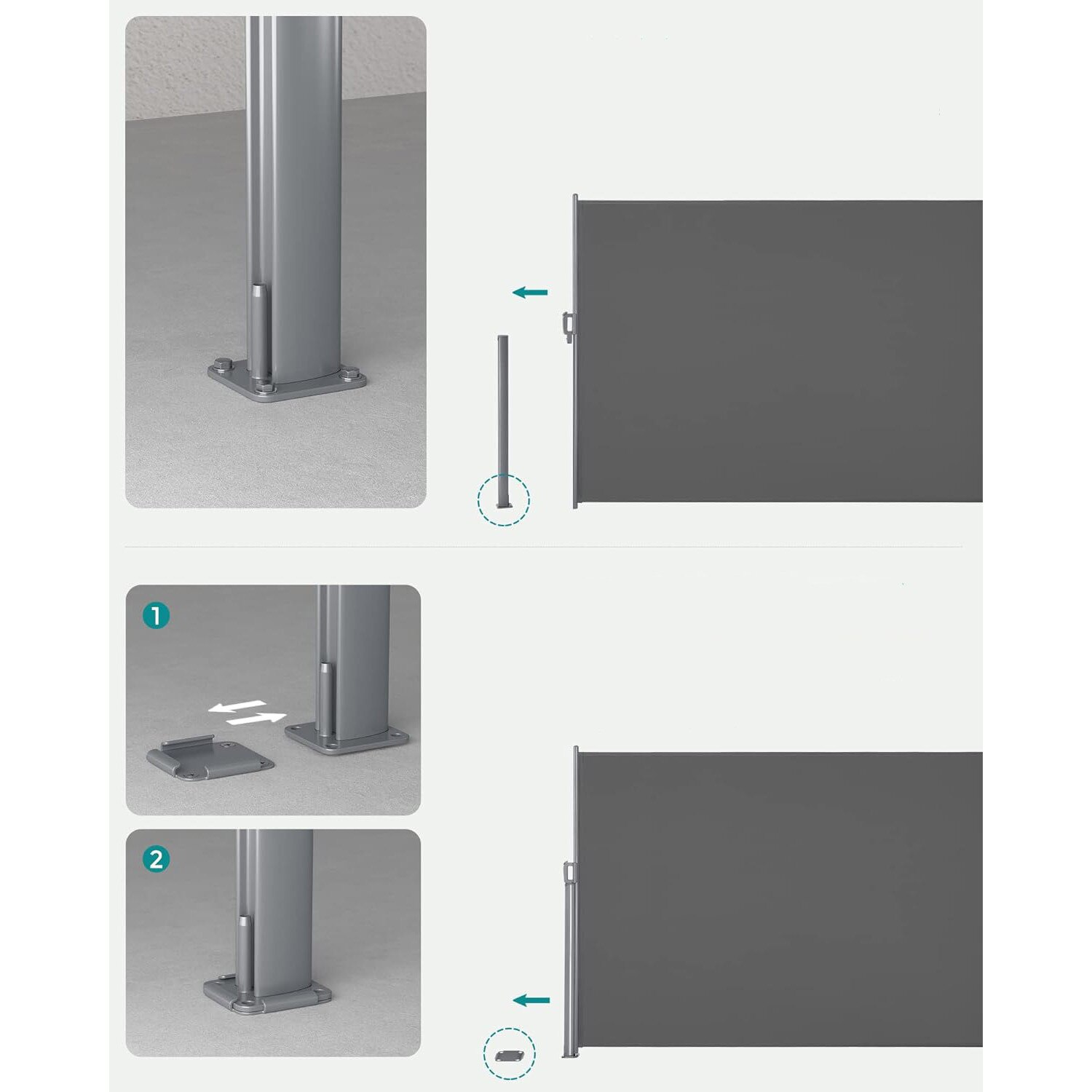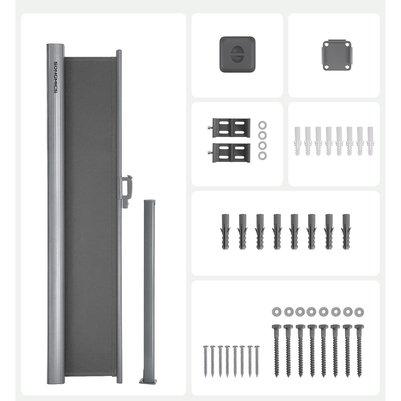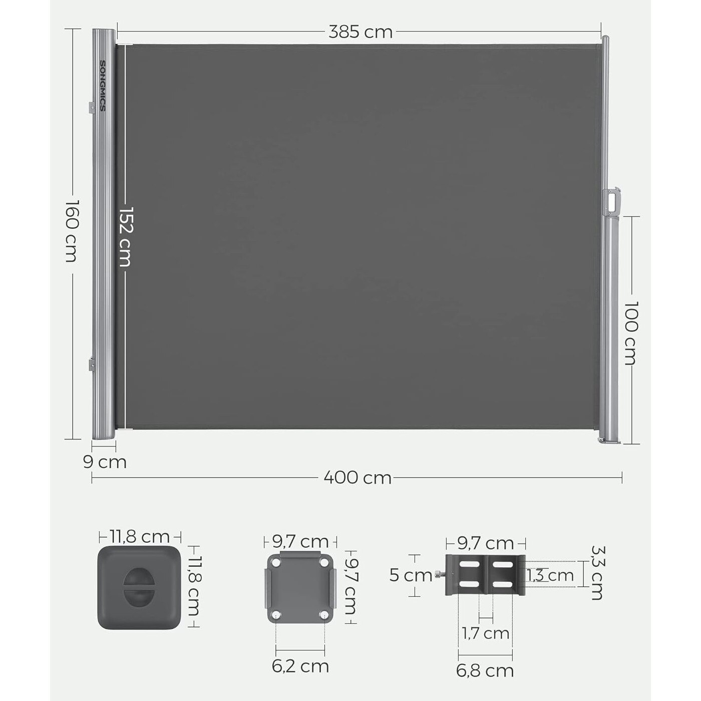 Paravan lateral pentru intimitate SONGMICS, extensibil, sistem fixare inclus, 160x400cm, gri