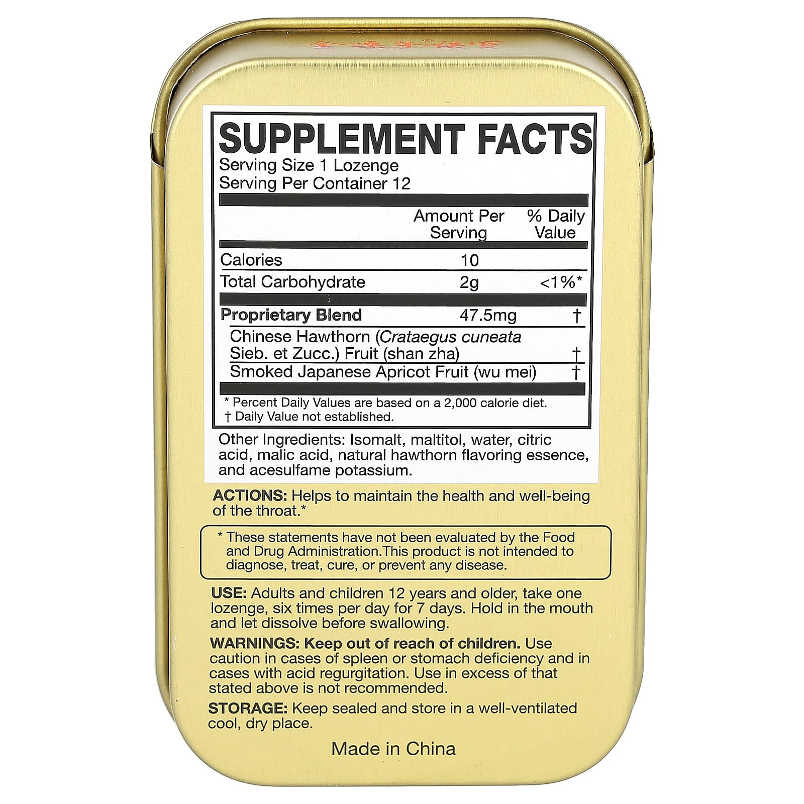 Pastile pentru gat Golden Throat, glog, 12 pastile, fara zahar
