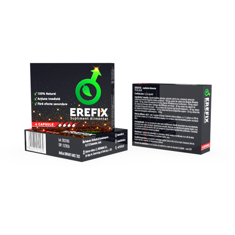 Produsul EREFIX este un supliment natural produs in Suedia, fiind conceput sa ofere beneficii fara a crea dependenta. Formulat exclusiv din ingrediente naturale, acesta este menit sa sprijine sanatatea sexuala masculina fara a afecta negativ organismul. Produsul are doar ingrediente 100% naturale si este conceput pentru a oferi o abordare sigura si eficienta pentru performanta sexuala masculina.