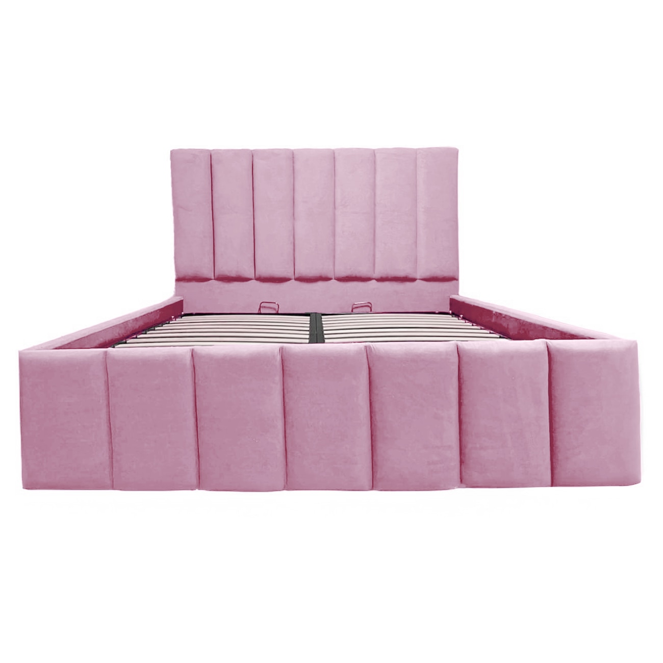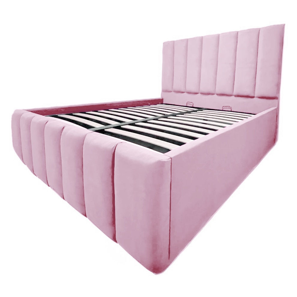 Pat Apolo tapitat 150/190 cu somiera rabatabila si spatiu depozitare roz pudra