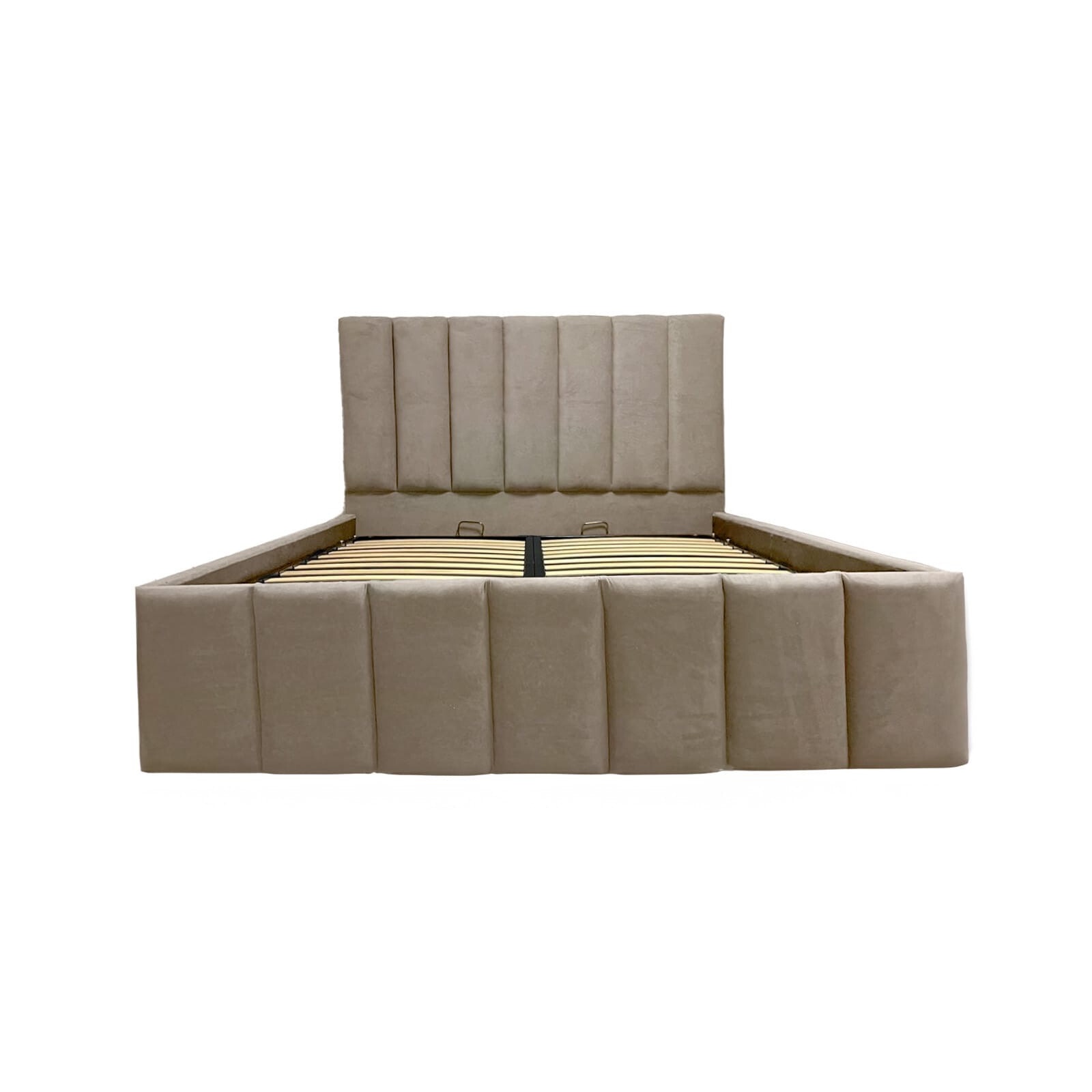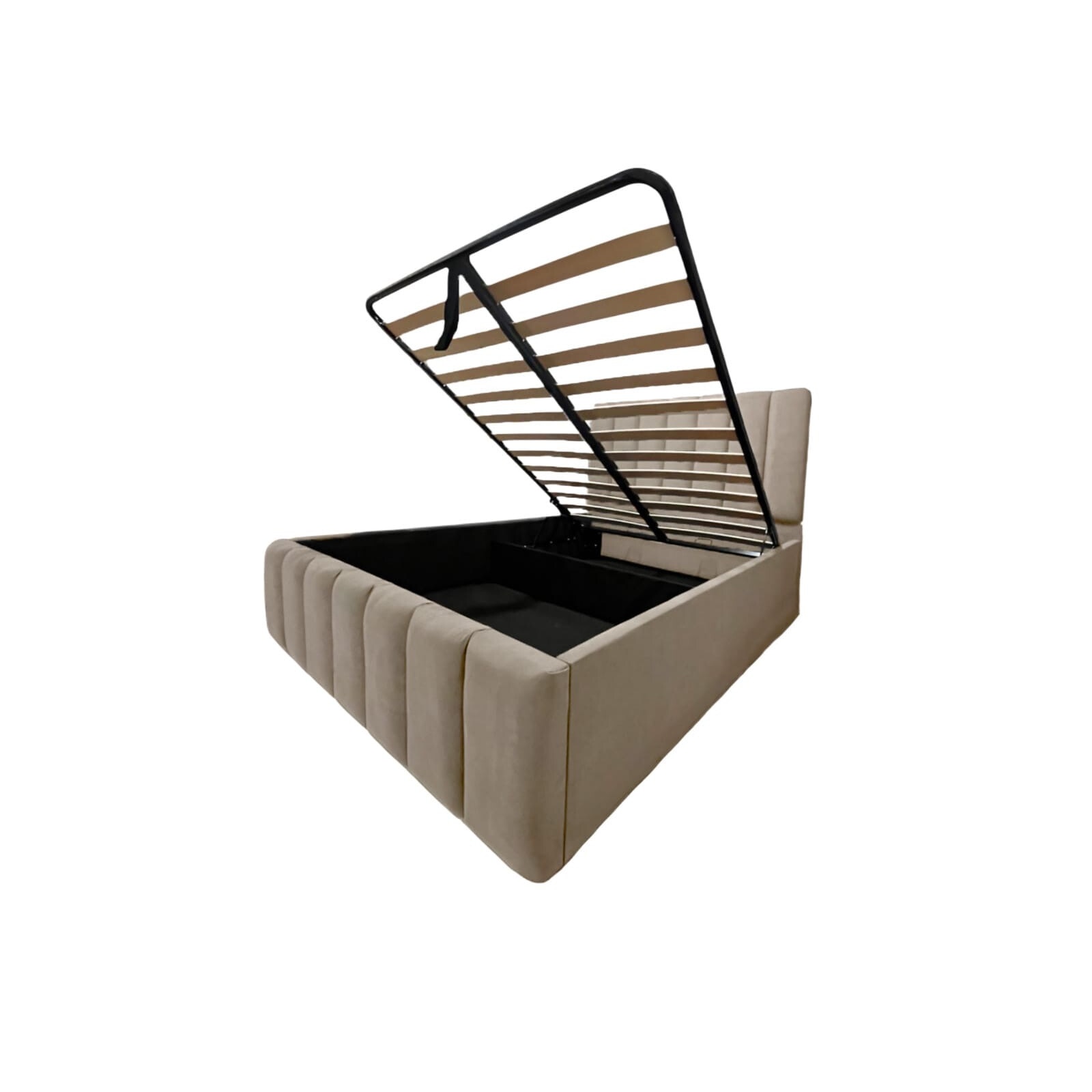 Pat Apolo tapitat 160 x 200 cu somiera rabatabila si spatiu de depozitare crem