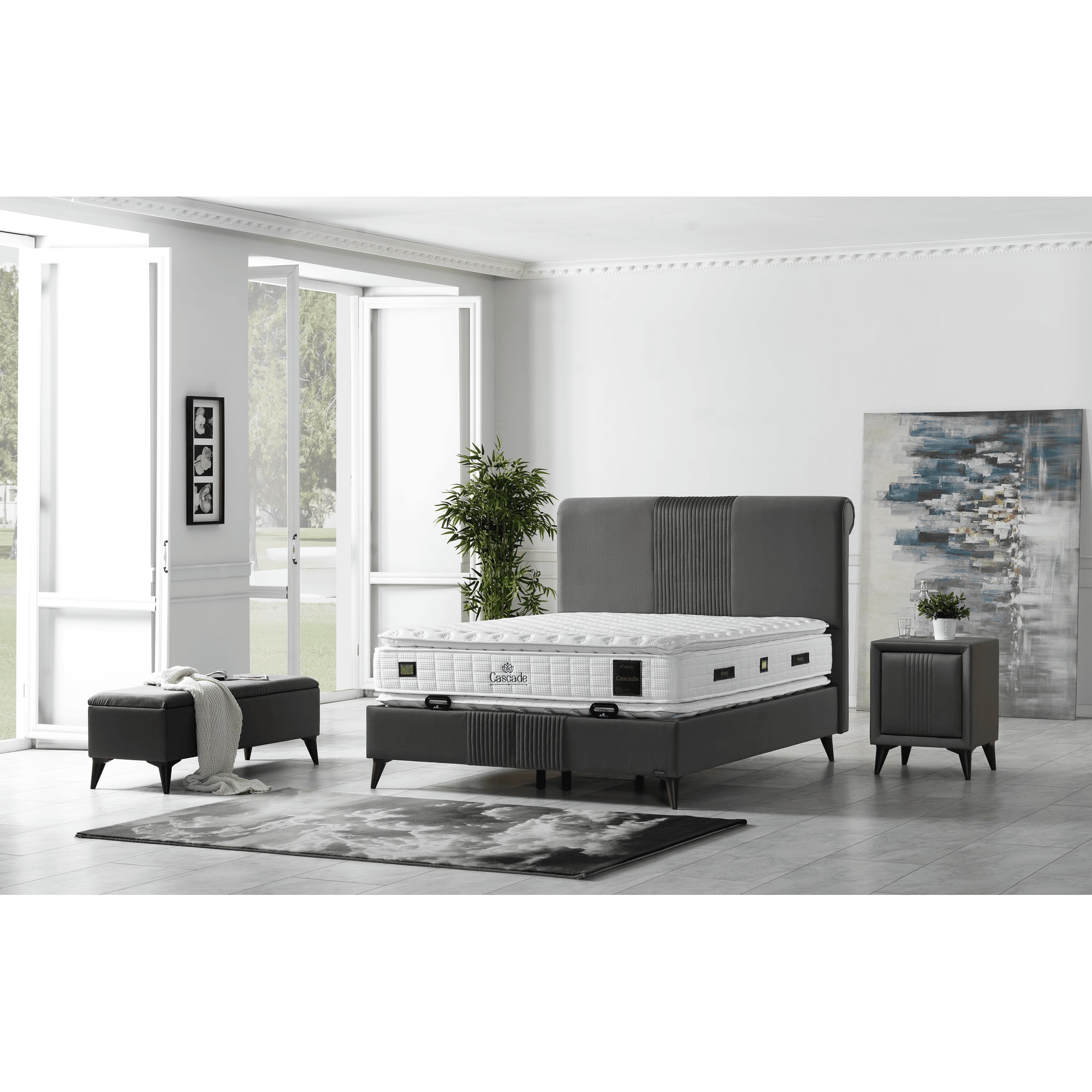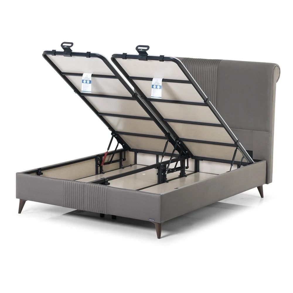 Pat Cascade 160x200, cadru metalic, somiera rabatabila, spatiu depozitare, catifea