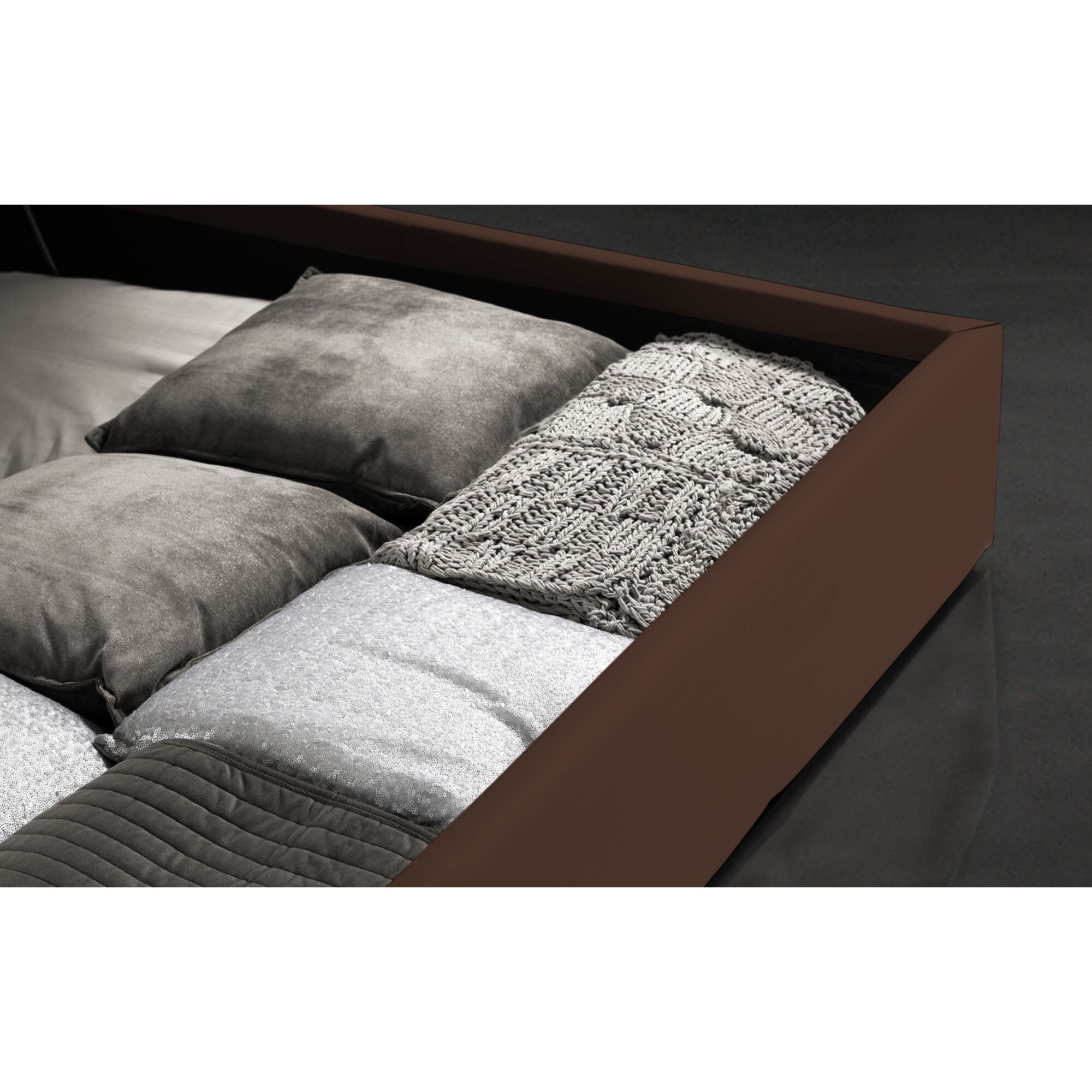 Pat Tapitat Rabatabil, cu Spatiu de Depozitare, Rombo Promo, Piele Ecologica, Dolce Dormire
