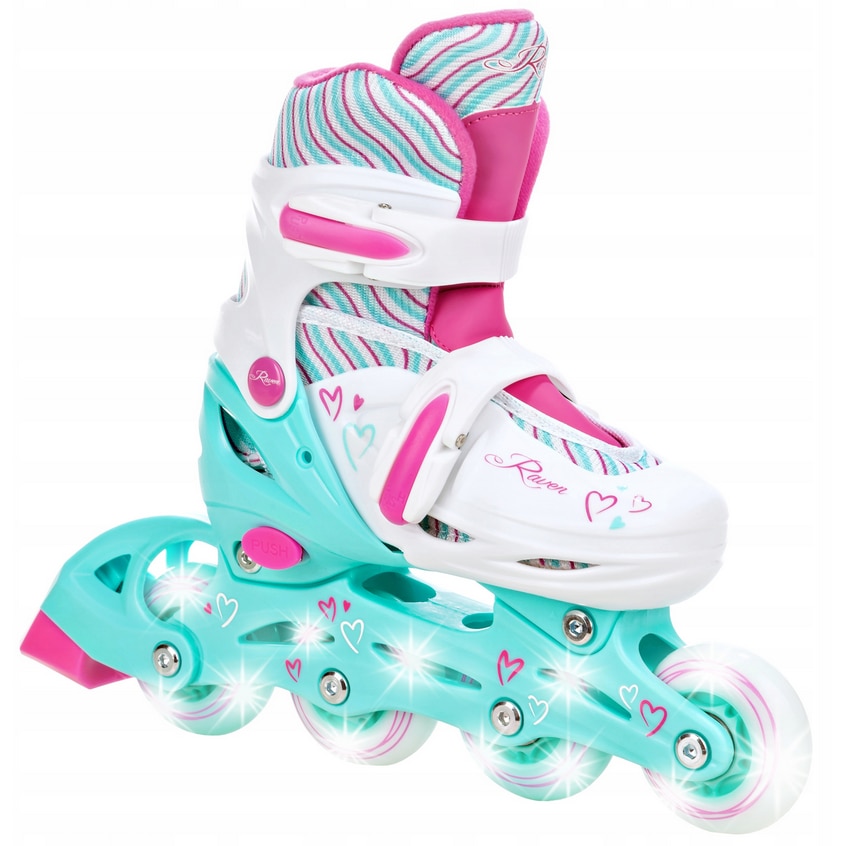Patine/Role 2in1 Reglabile Raven Loret (LED), Alb/Auriu, XS(27-30)