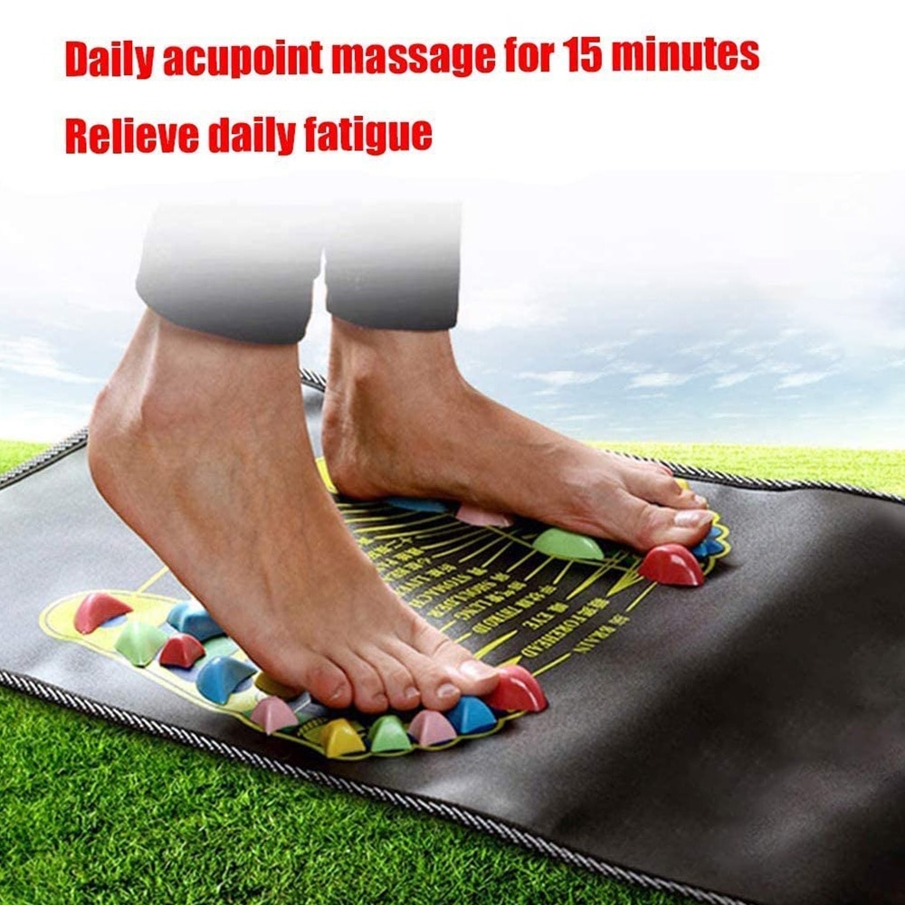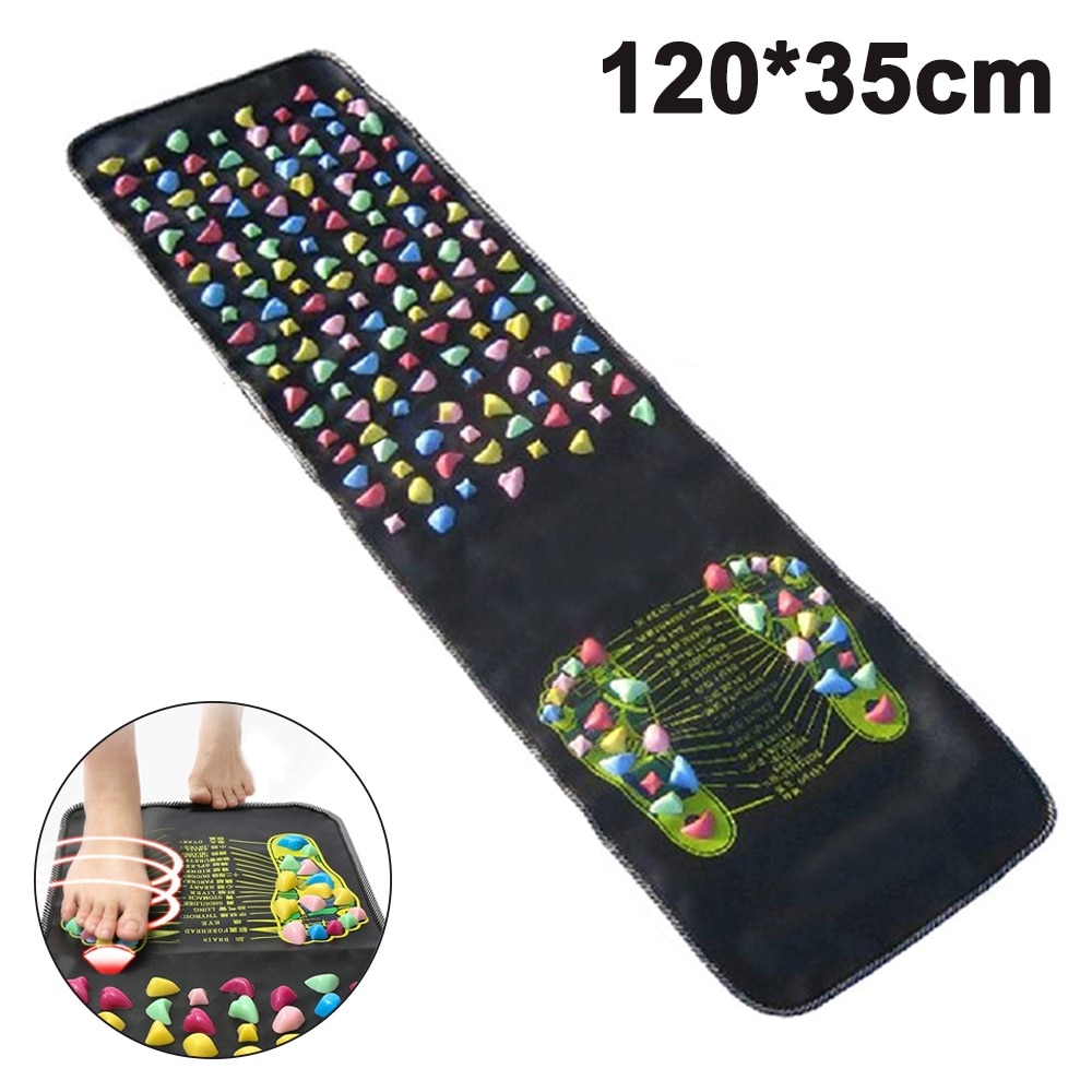 Patura de masaj pentru picioare, AMRINUGL, 120x35cm, piele, polipropilena, neagra cu pietre multicolore