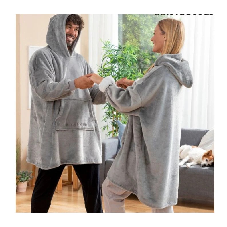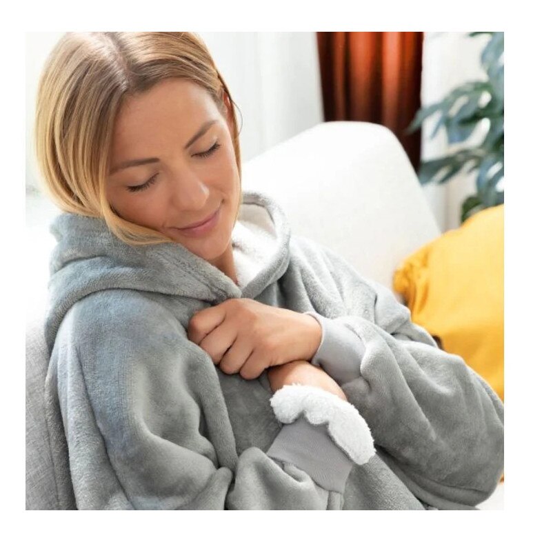 Patura-Hanorac, Vivendo, Huggle Hoodie, Gri, Masura Universala, Reversibila, 75x75cm
