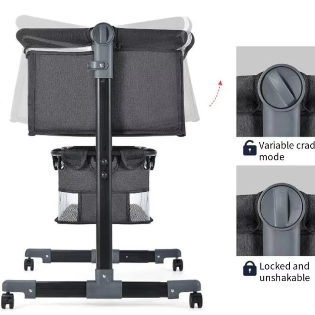 Mobilitate Totala: Dotat cu 4 roti care se rotesc la 360 de grade, patutul poate fi mutat fara efort dintr-o camera in alta. Fiecare roata are o frana dedicata ("Sturdy Brake") pentru stabilitate maxima atunci cand este fixat.