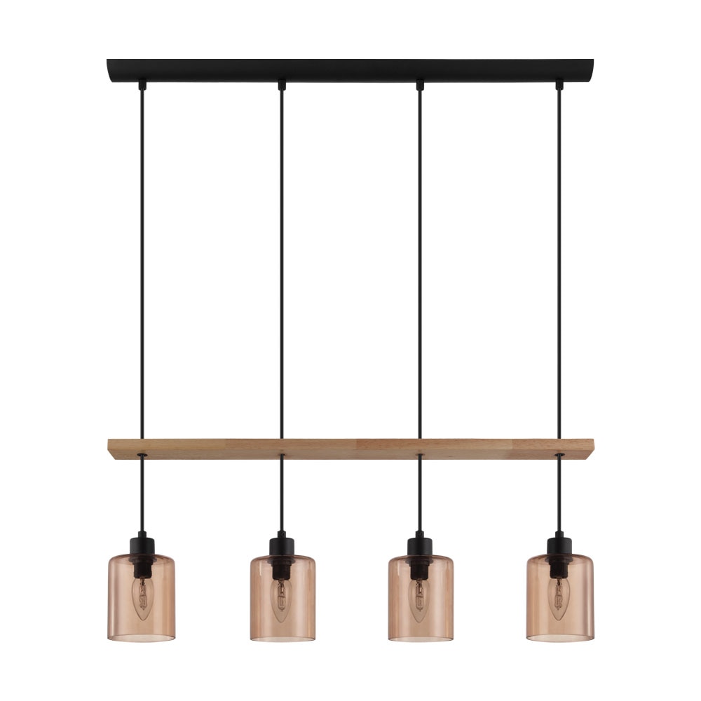 Pendul vintage COOLMONT, EGLO, E14, 4x40W, otel, lemn, sticla, negru, natur, bronz transparent, 110 x 77.5 x 10 cm, inaltime reglabila