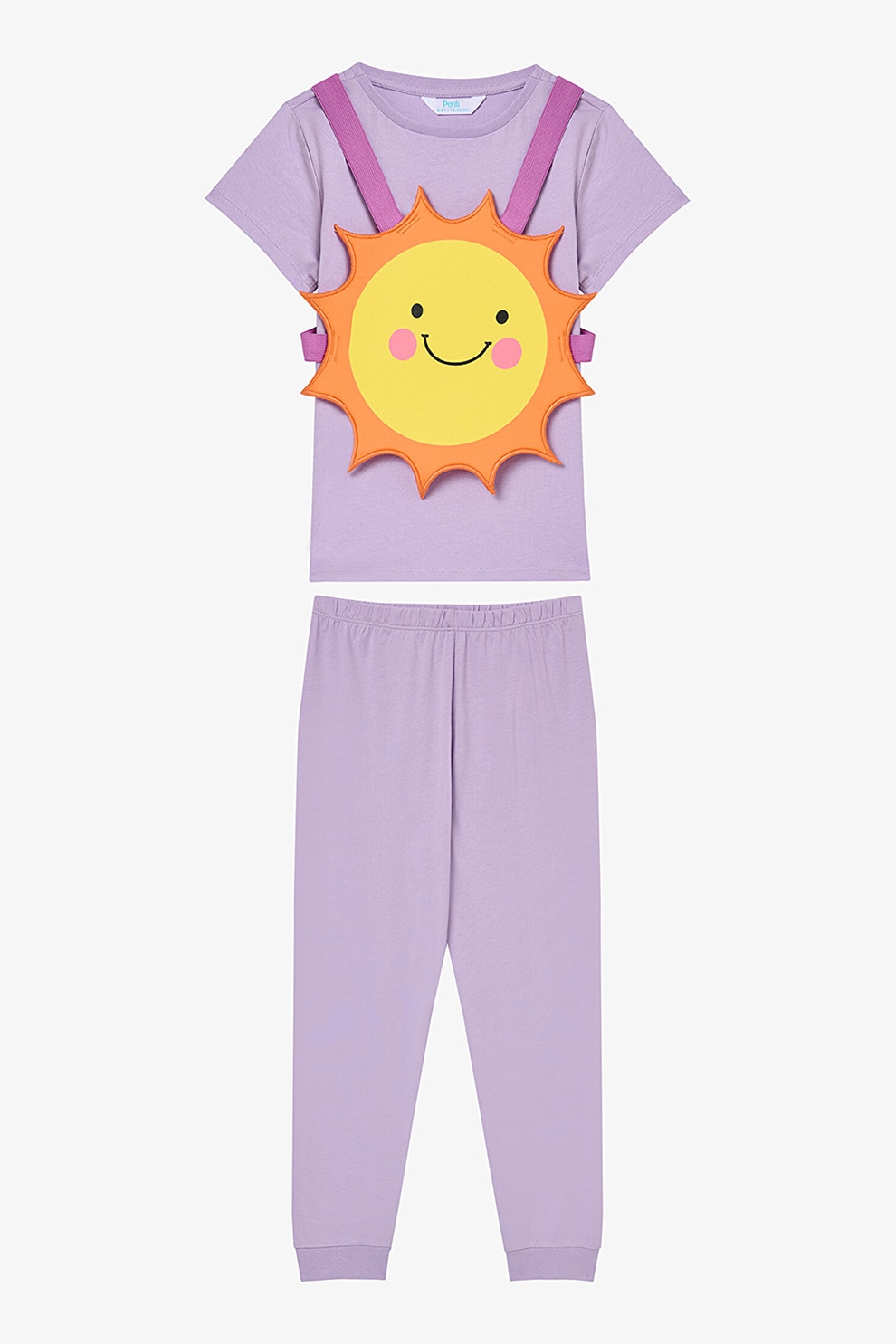 Penti, Pijama cu detaliu grafic, Galben/Albastru lavanda