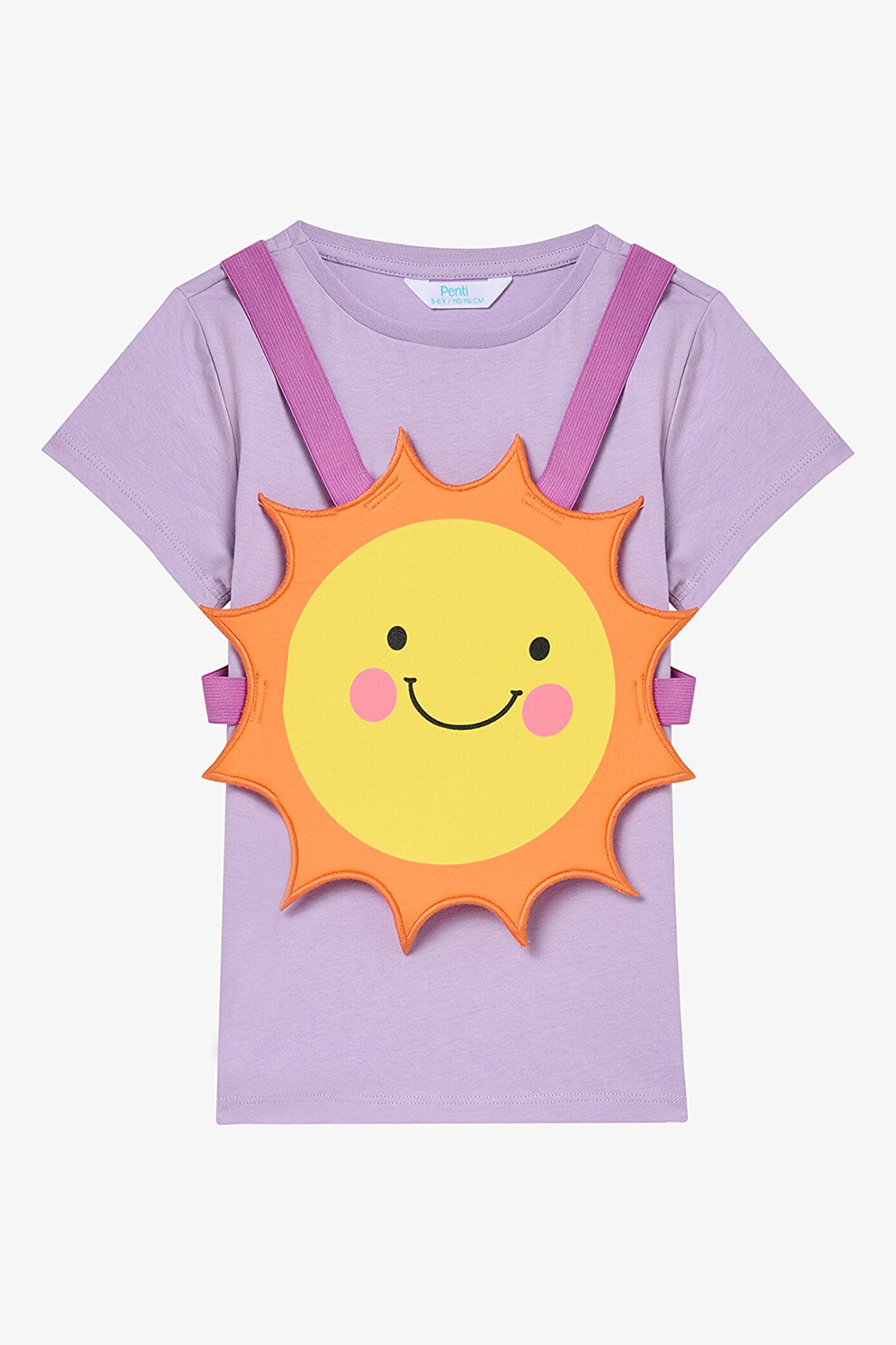 Penti - Pijama cu detaliu grafic, Galben/Albastru lavanda