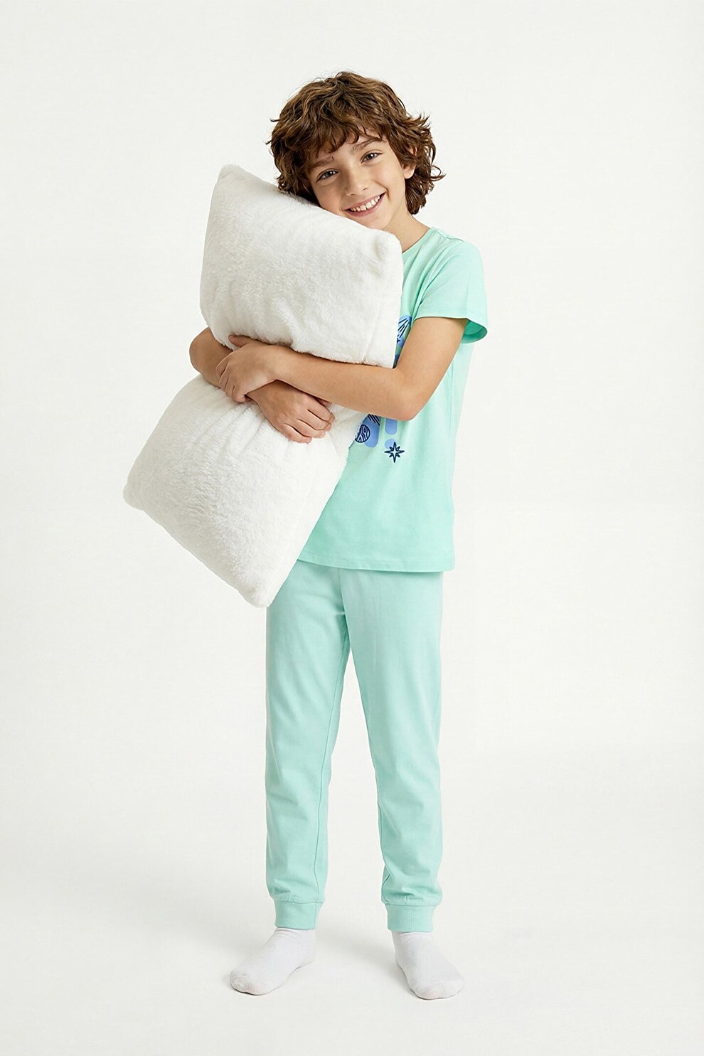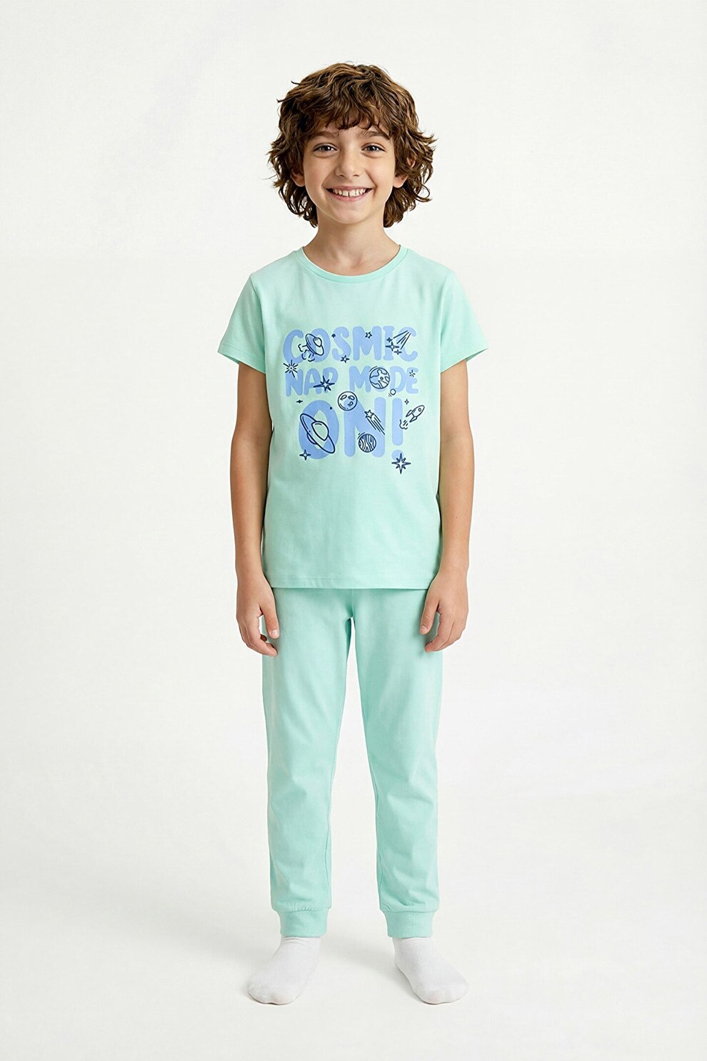 Penti - Set de pijamale lungi cu imprimeu cosmic - 4 piese, Albastru inchis/Verde menta