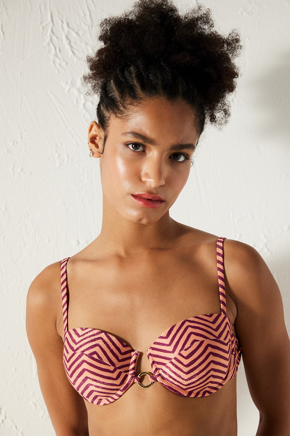 Penti - Sutien de baie cu model herringbone, Piersica/Violet tyrian