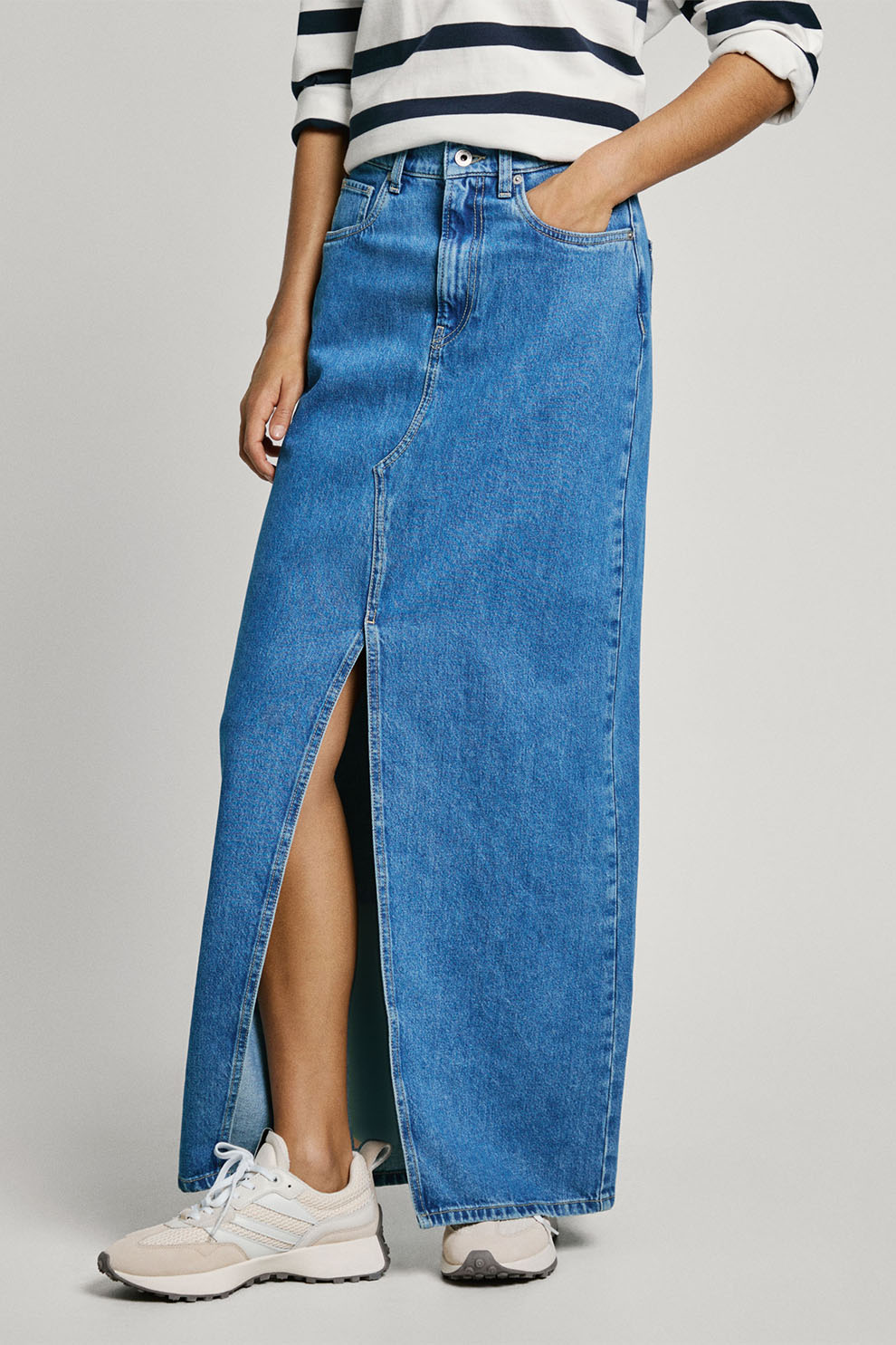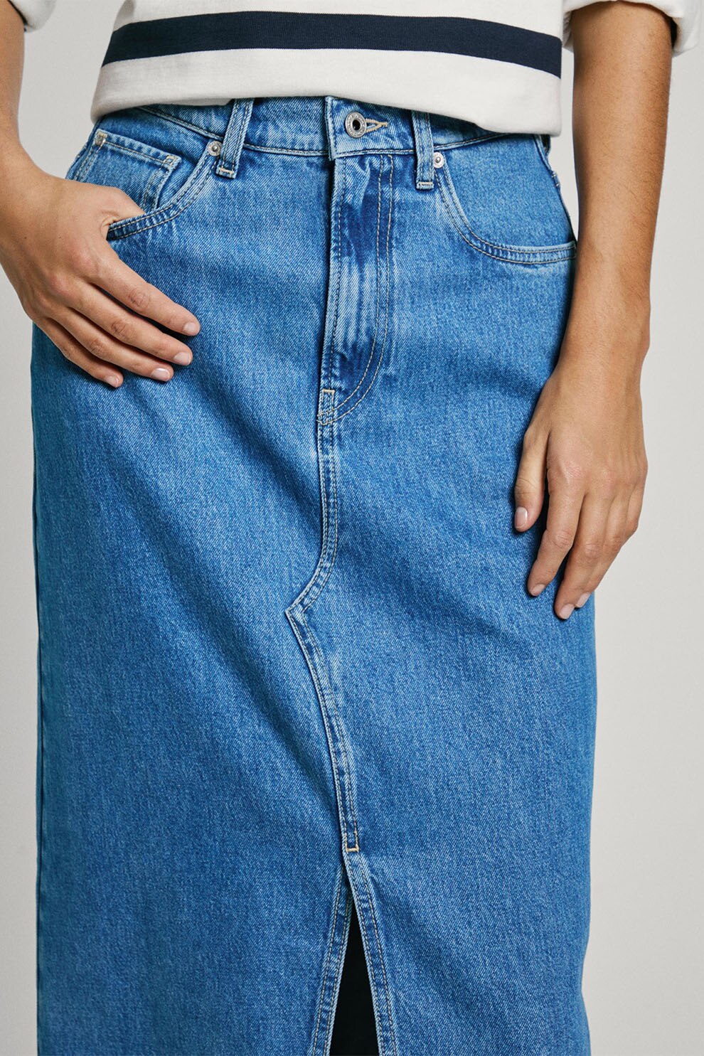 Pepe Jeans London - Fusta dreapta din denim, Albastru pastel
