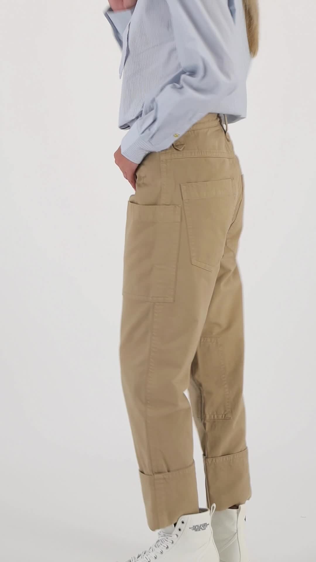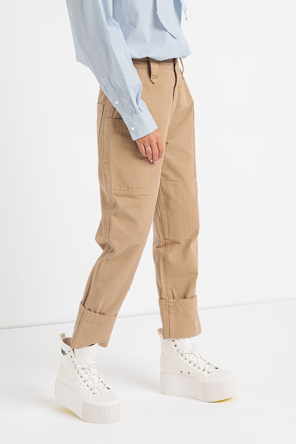 Pepe Jeans London - Pantaloni drepti cu talie inalta din amestec de in Anais, Bej, S