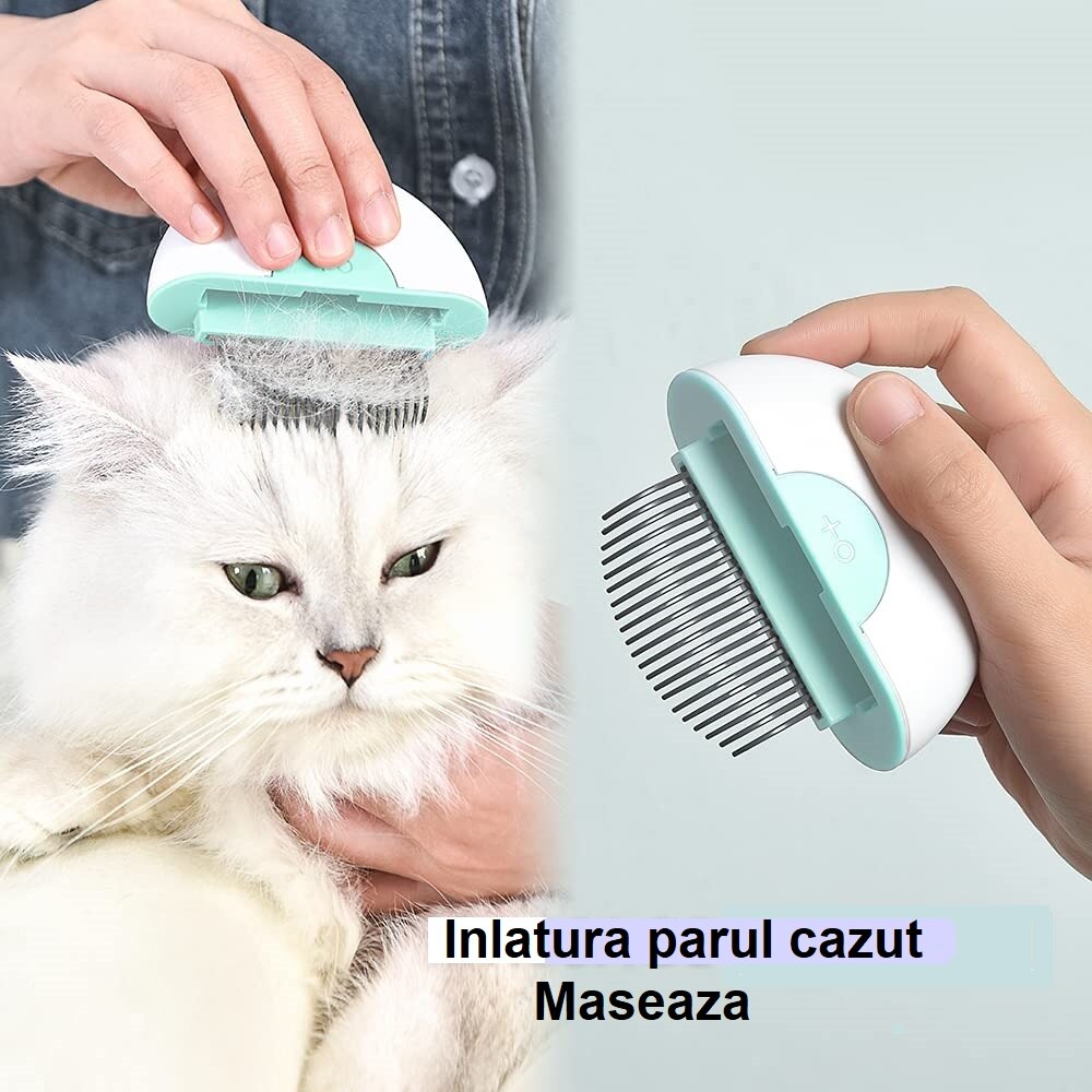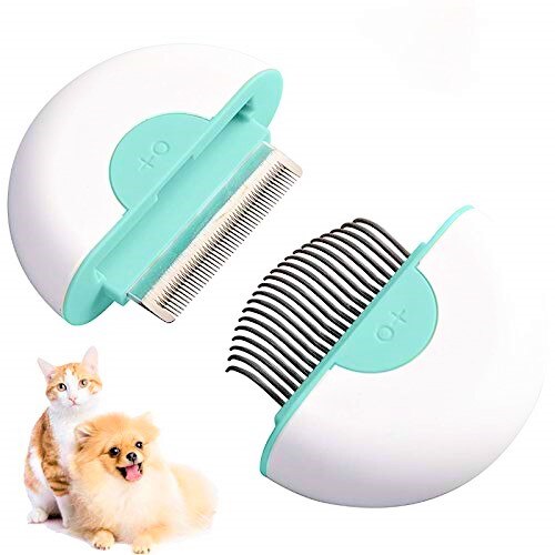 Perie 2 in 1, pentru descalcirea si ingrijirea parului de caini si pisici, Pocket, Alb/Bleu