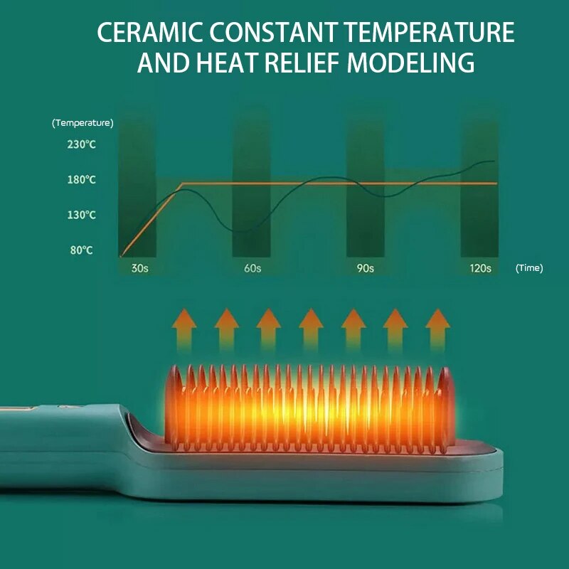 Perie electrica de indreptat parul, incalzire rapida, temperatura reglabila, verde/alb, 29cm