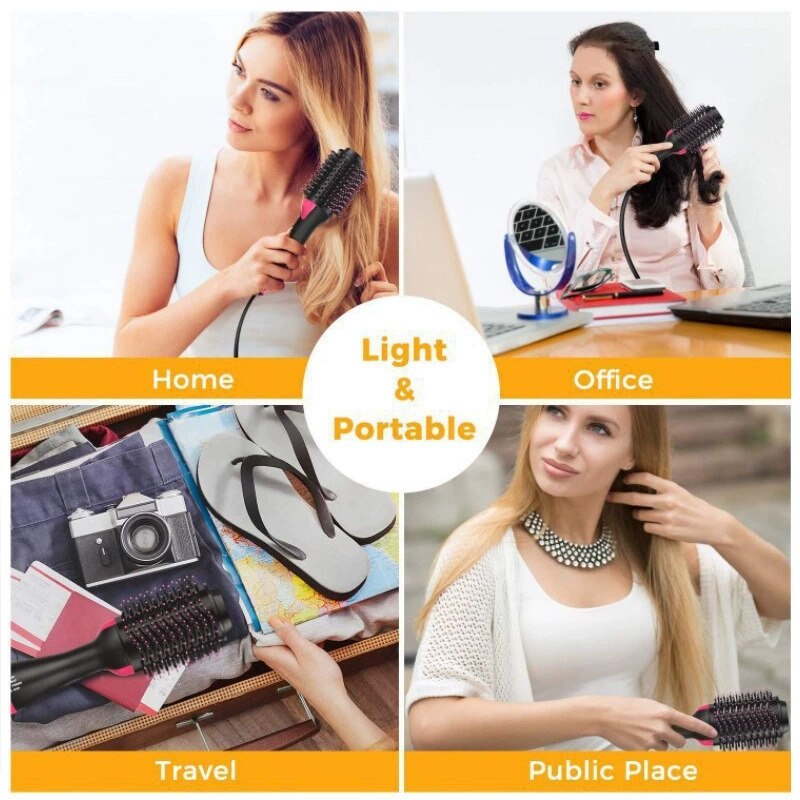 Perie electrica de par, uscator de par si aparat de coafat volumizator, 10 setari de temperatura, pentru toate tipurile de par, ceramica, negru roz