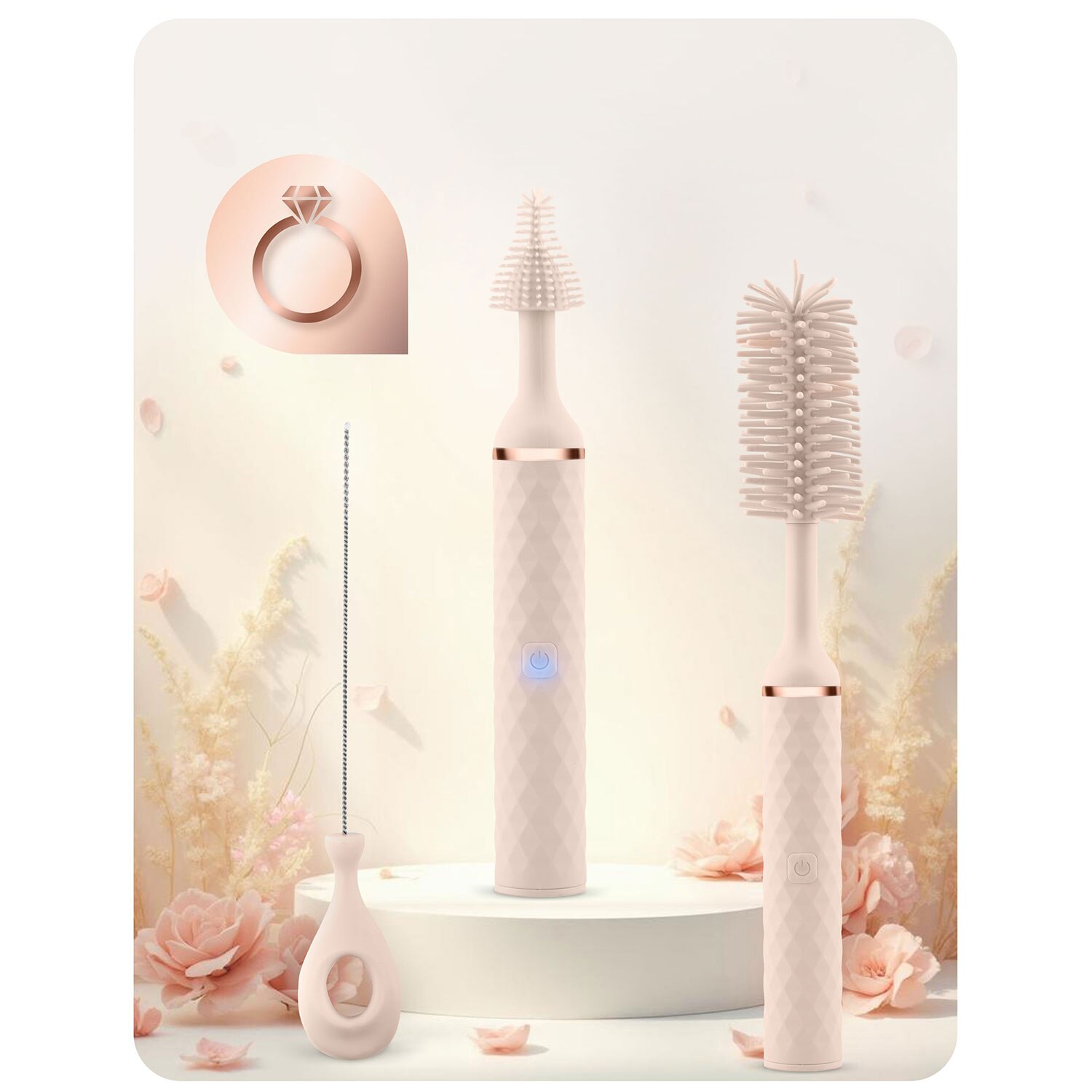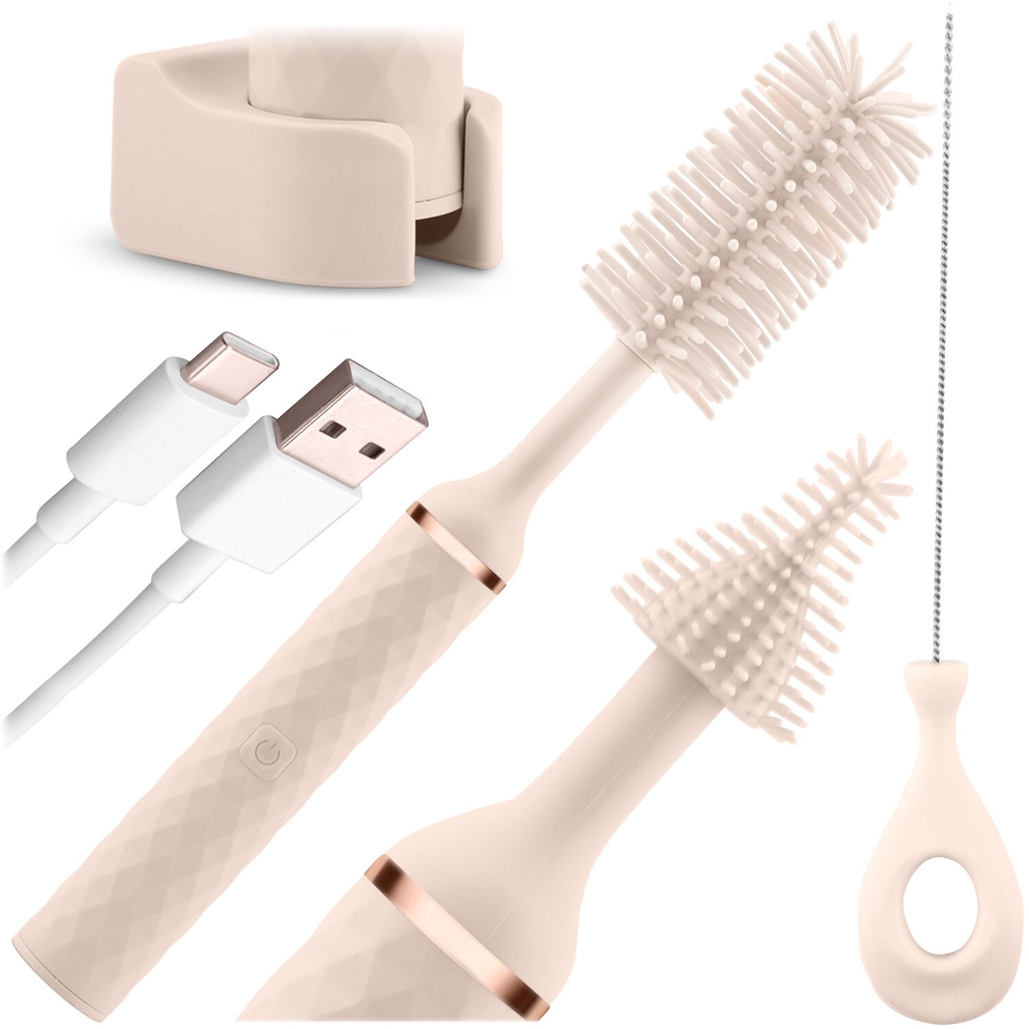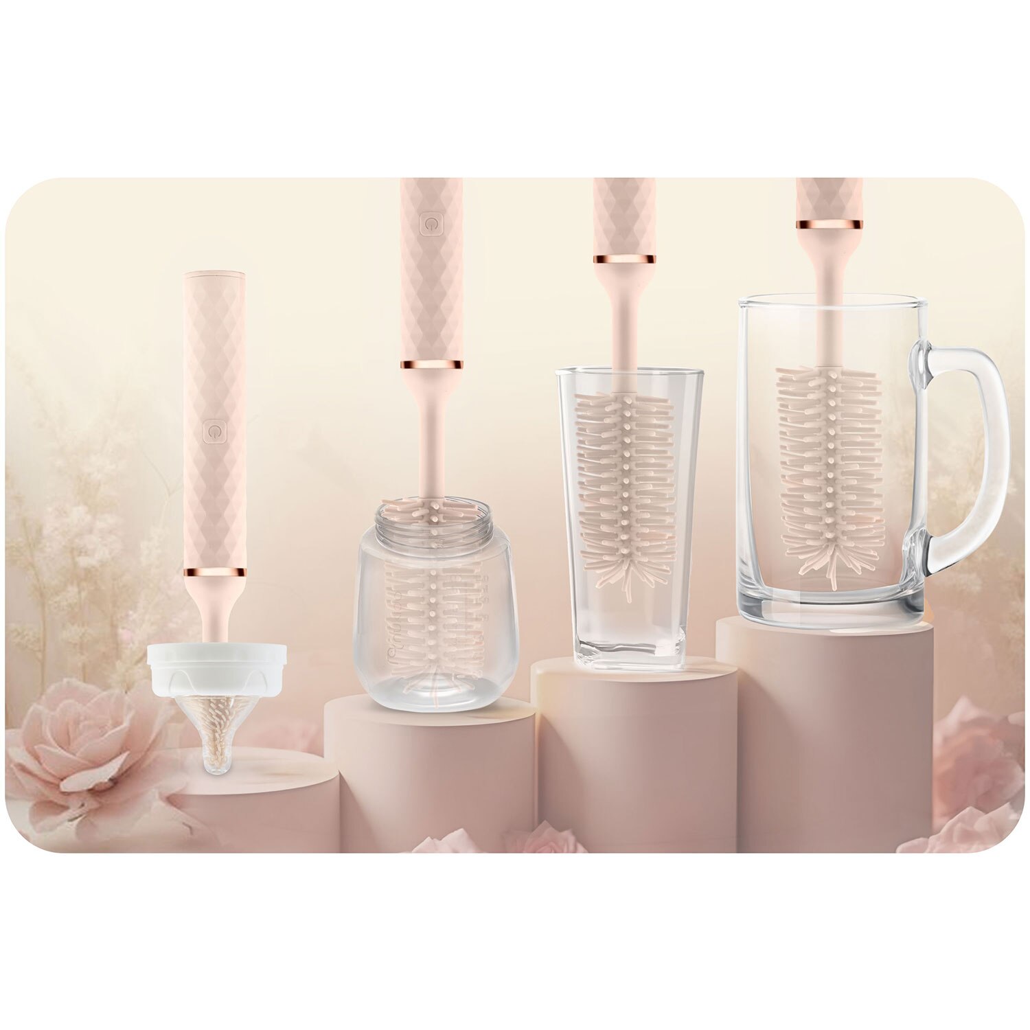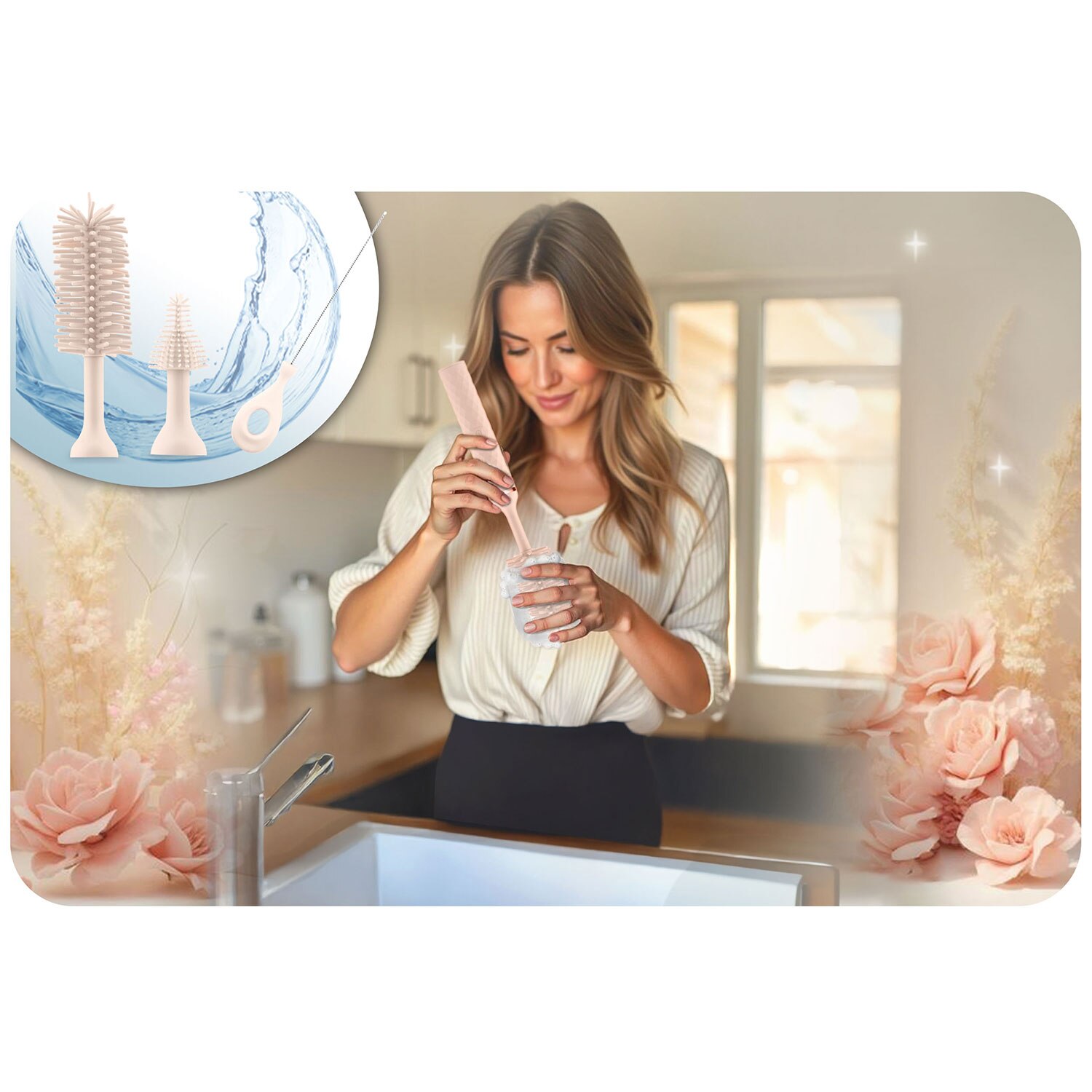 Perie electrica pentru spalat sticle Nukido - NICIODATA N-A FOST MAI USOR! Curatarea temeinica a biberoanelor este cruciala pentru sanatatea si siguranta copilului dumneavoastra. Se intampla uneori ca reziduurile uscate sa nu fie complet indepartate atunci cand sunt spalate manual sau in masina de spalat vase - aceasta problema dispare de acum inainte! O perie electrica va face spalarea pentru tine. Doua varfuri pivotante din silicon usor de inlocuit si o perie speciala pentru furtun va vor asigura igiena zilnica si va vor permite sa hraniti bebelusul cu alimente sanatoase si sigure. SIGURANTA COMPLETA – 0% BPA ✅ Periuta de dinti electrica Nukido pentru spalat biberoane si suzete nu contine Bisfenol A! BPA este un compus utilizat in productia de materiale plastice care are un impact negativ asupra organismului. Sugarii si copiii mici sunt expusi in mod deosebit la efectele toxice ale bisfenolului A, deoarece corpul lor nu poate elimina eficient toxinele din organism. Peria noastra nu contine acest compus! Avand grija de sanatatea micutilor tai, am depus toate eforturile pentru a ne asigura ca toate elementele sunt complet sigure si nu deterioreaza vasele care sunt spalate. Cream doar produse care satisfac asteptarile celor mai pretentioase mamici. VITEZA SI PRECIZITATE Varfurile de curatare rotative isi vor face treaba mult mai precis si mult mai rapid decat am fi capabili sa o facem noi insine. Structura lor special conceputa, adaptata pentru a indeparta toate reziduurile de pe elemente de diferite forme si dimensiuni, va ajunge chiar si in cele mai adanci colturi si va asigura ca suprafata lor este intotdeauna perfect curata. Veti putea folosi din nou vasul curatat cu aceeasi constiinta curata si cu aceeasi siguranta de siguranta. UTILITATE UNIVERSALA Mai mult, peria va fi utila si pentru curatarea altor vase - precum cani, sticle de apa sau termosuri, al caror interior este uneori dificil de curatat temeinic prin metode traditionale. Utilitatea periei nu se termina atunci cand copilul creste din baut din sticla. Odata achizitionata, o perie poate fi folosita ani de zile, usurand activitatile zilnice din bucatarie. Acesta este un ajutor de nepretuit pentru toti membrii gospodariei si ii va scuti de efort obositor. ELEGANTA TEHNICA Peria electrica Nukido este proiectata elegant cu materiale rezistente. Dispozitivul are un maner confortabil, este desigur rezistent la apa si este controlat intuitiv - un buton cu un indicator LED care indica functionarea regulata, starea de incarcare si, de asemenea, avertizeaza despre tensiunea scazuta. Varfuri diversificate Varfurile rotative din silicon sunt concepute astfel incat perii lor sa poata curata orice forma de vas fara a-i deteriora suprafata, dar si in asa fel incat sa poata fi spalate cu usurinta. Forma lor si materialul din care sunt fabricate au fost alese pentru a se asigura ca nu se acumuleaza reziduuri sau bacterii pe ele. Libertate wireless Bateria de 1200 mAh ofera periei un timp de functionare de pana la 3 ore la o singura incarcare folosind un incarcator USB-C. Pentru a economisi energie, dispozitivul se opreste automat dupa 30 de minute. PARTELE PERIEI POT FI SPALATE IN MASINA DE SPALAT VASE (cu exceptia tabloului electric)! Materialele din care sunt realizate capetele de perie au proprietati antibacteriene si sunt usor de curatat. CONTINUT SET: varf de biberon, varf de suzeta, varf de furtun, cablu USB-C, pandantiv