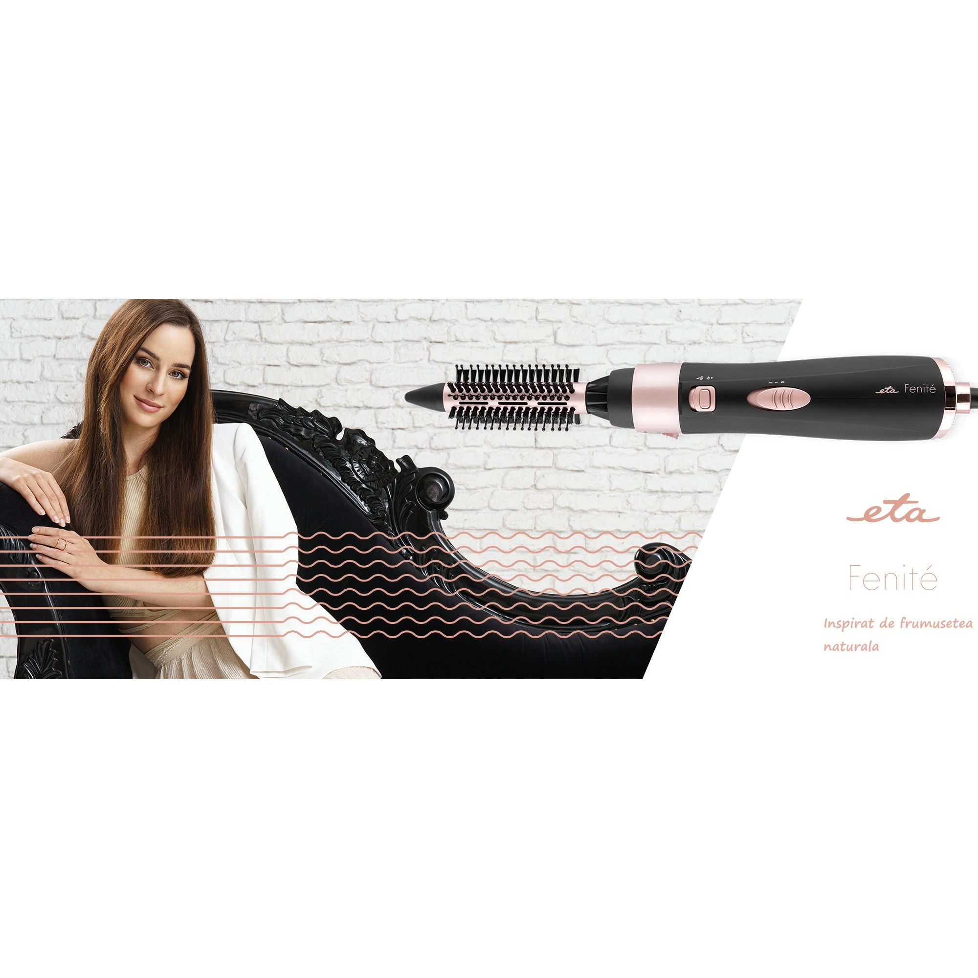 Perie ondulatoare cu aer cald si ionizare ETA Fenite 4321 90010, 1000 W, 3 accesorii, negru