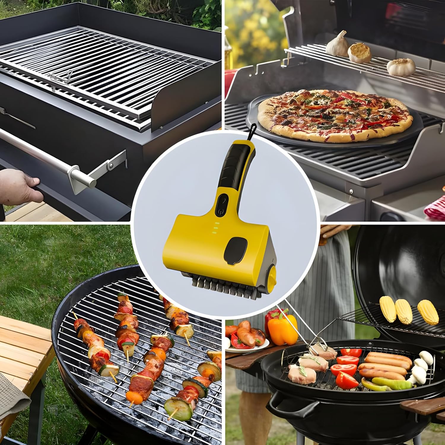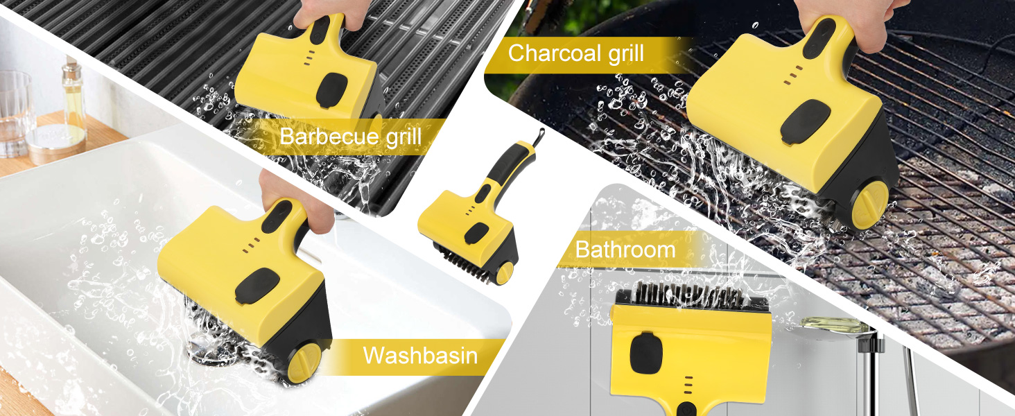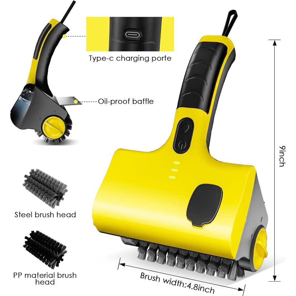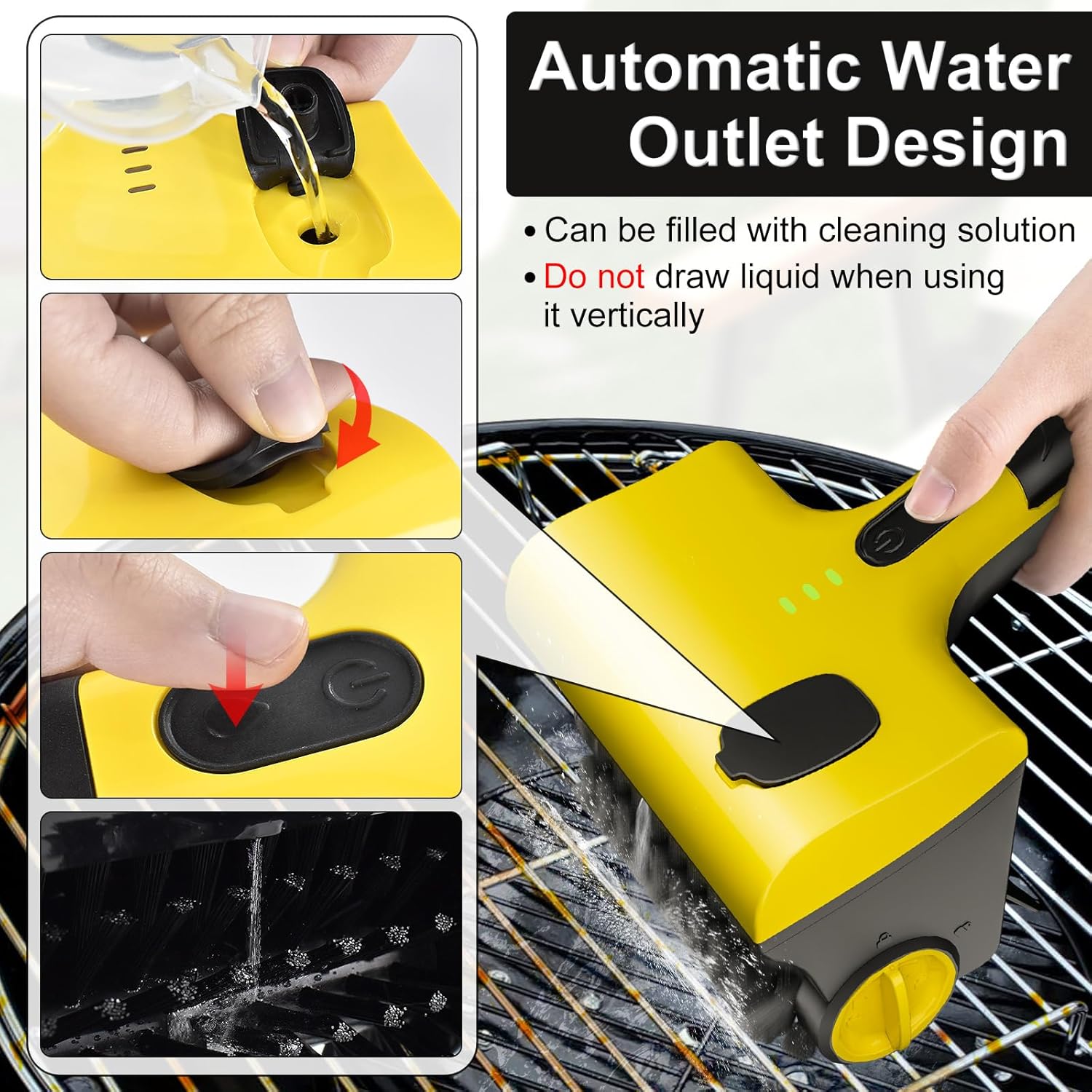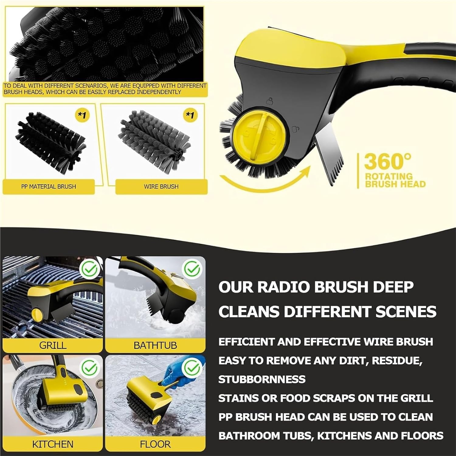 Perie Rotativa Electrica Multifunctionala pentru Gratar, Cu 2 Perii din Otel Inoxidabil si PPC Interschimbabile, 2 Viteze, 280 - 320 Rotatii pe Minut, Rezervor Apa pentru Pulverizare, Indicator LED Baterie, Acumulator 2600 mAh, IPX7