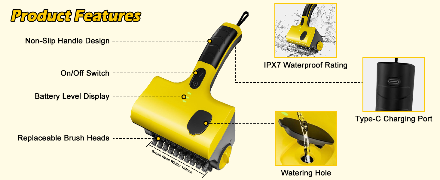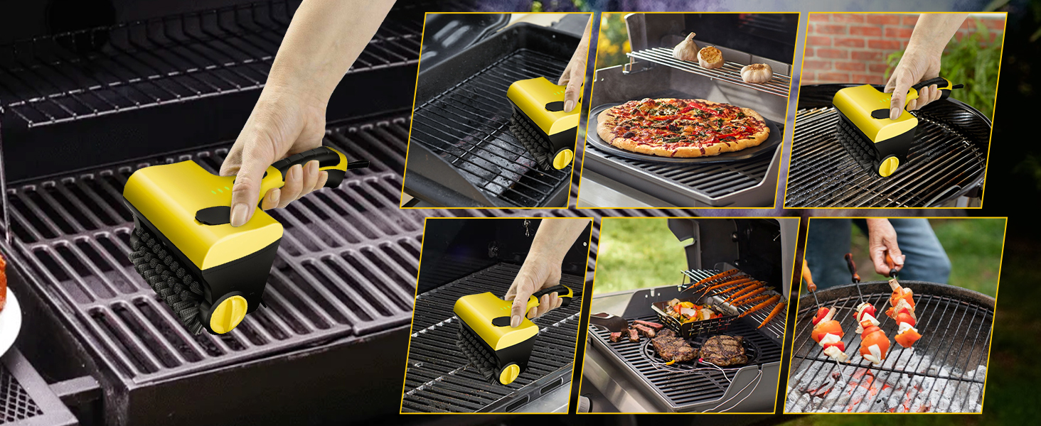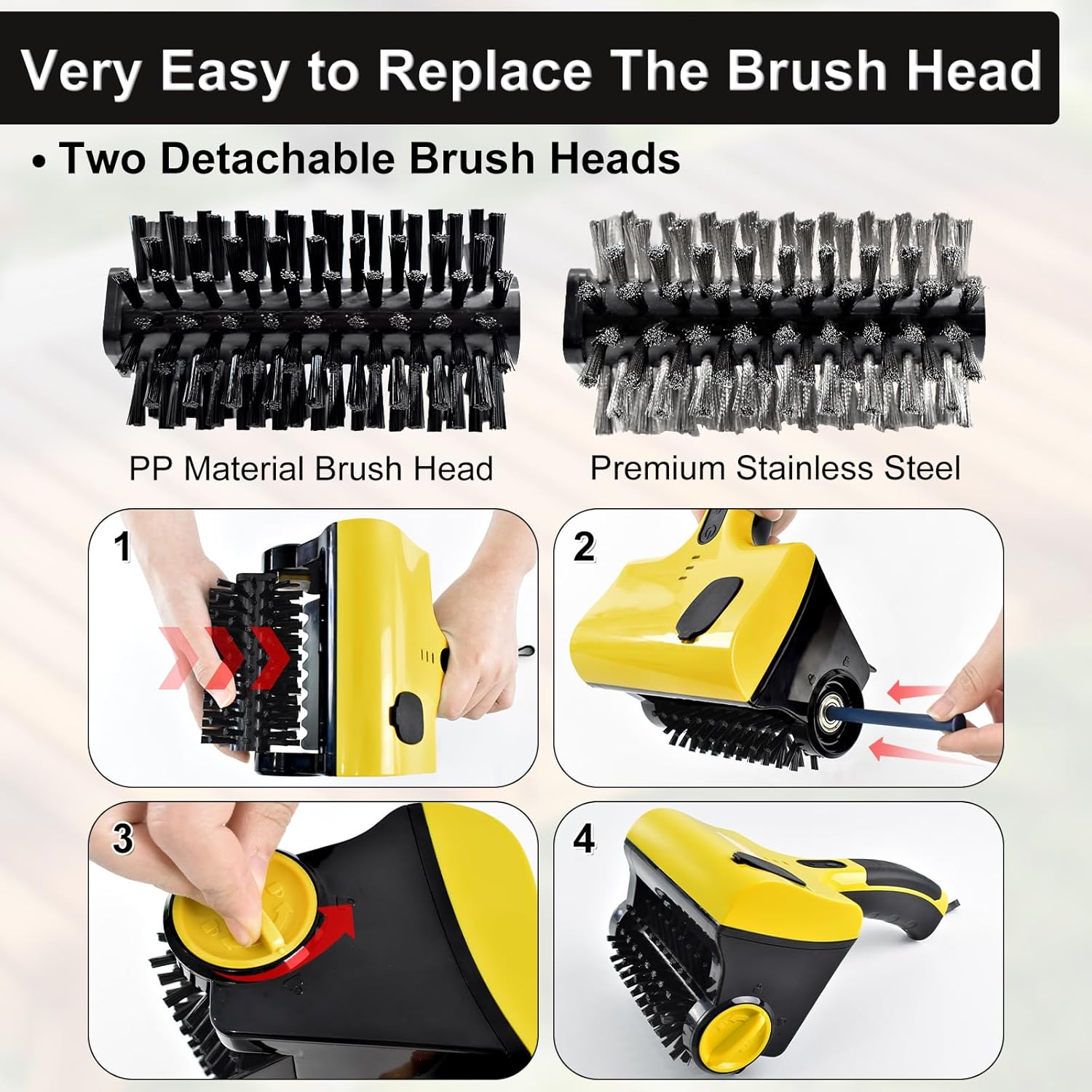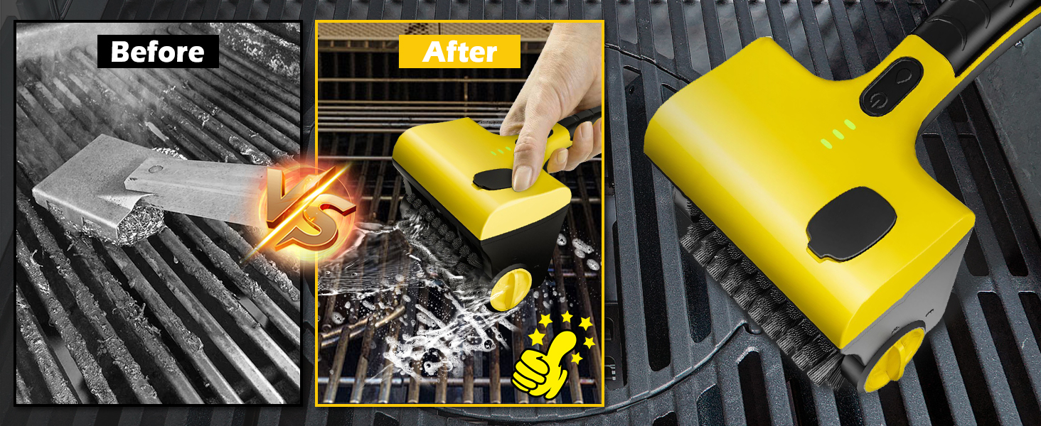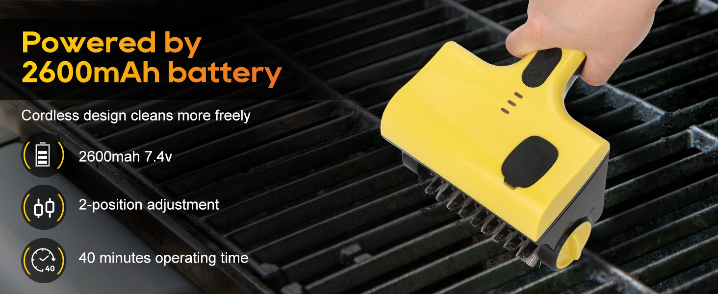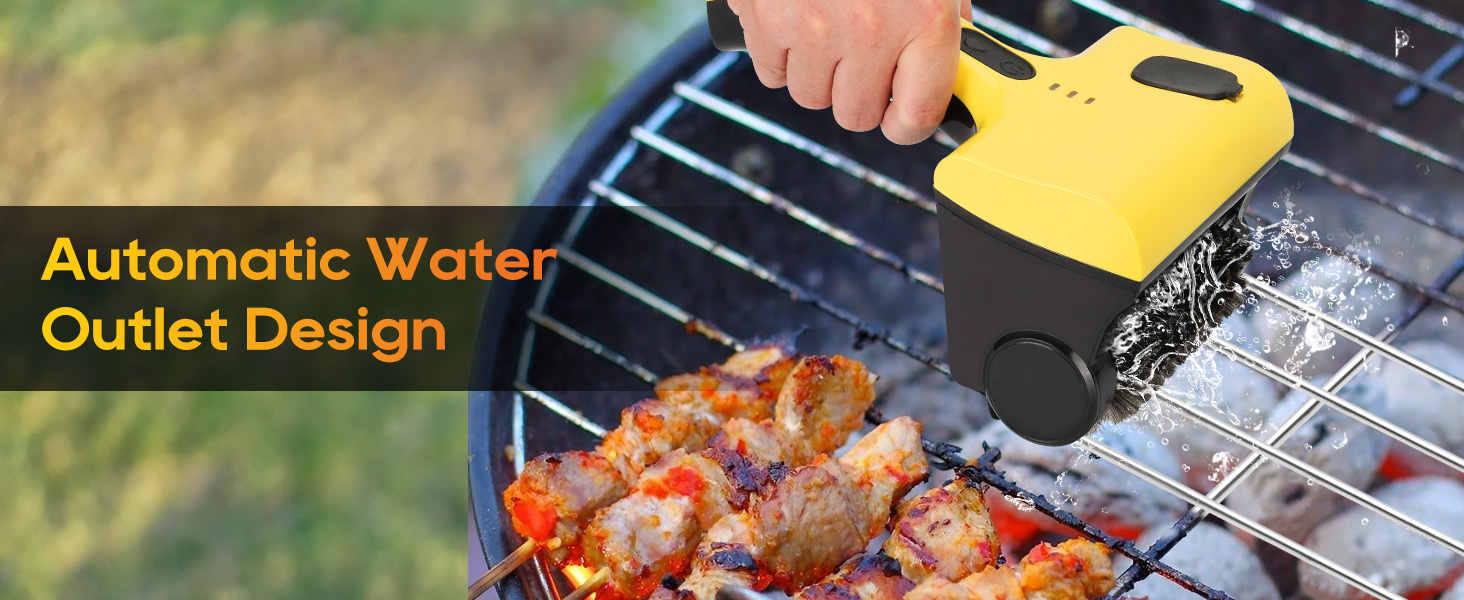 Perie Rotativa Electrica Multifunctionala pentru Gratar, Cu 2 Perii din Otel Inoxidabil si PPC Interschimbabile, 2 Viteze, 280 - 320 Rotatii pe Minut, Rezervor Apa pentru Pulverizare, Indicator LED Baterie, Acumulator 2600 mAh, IPX7