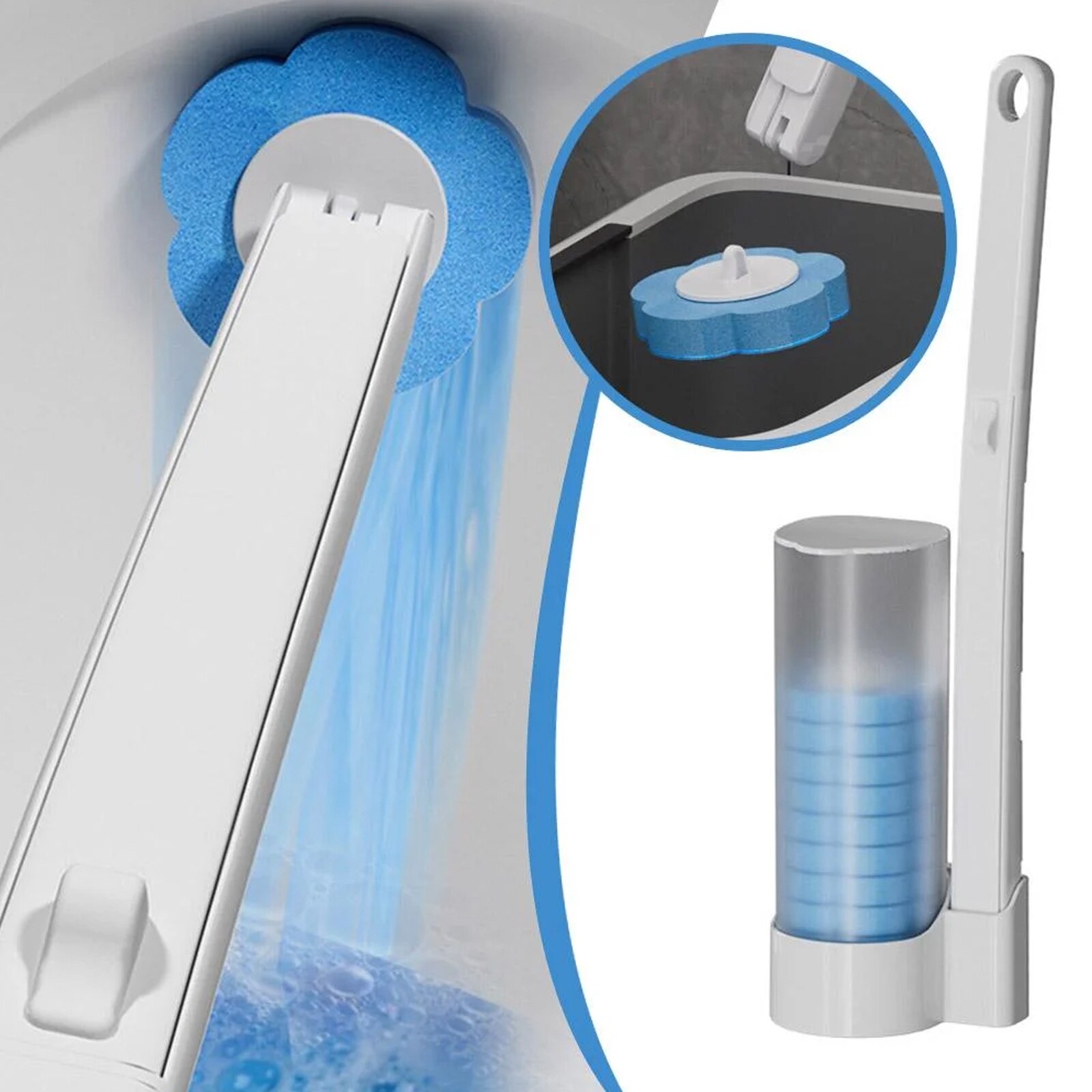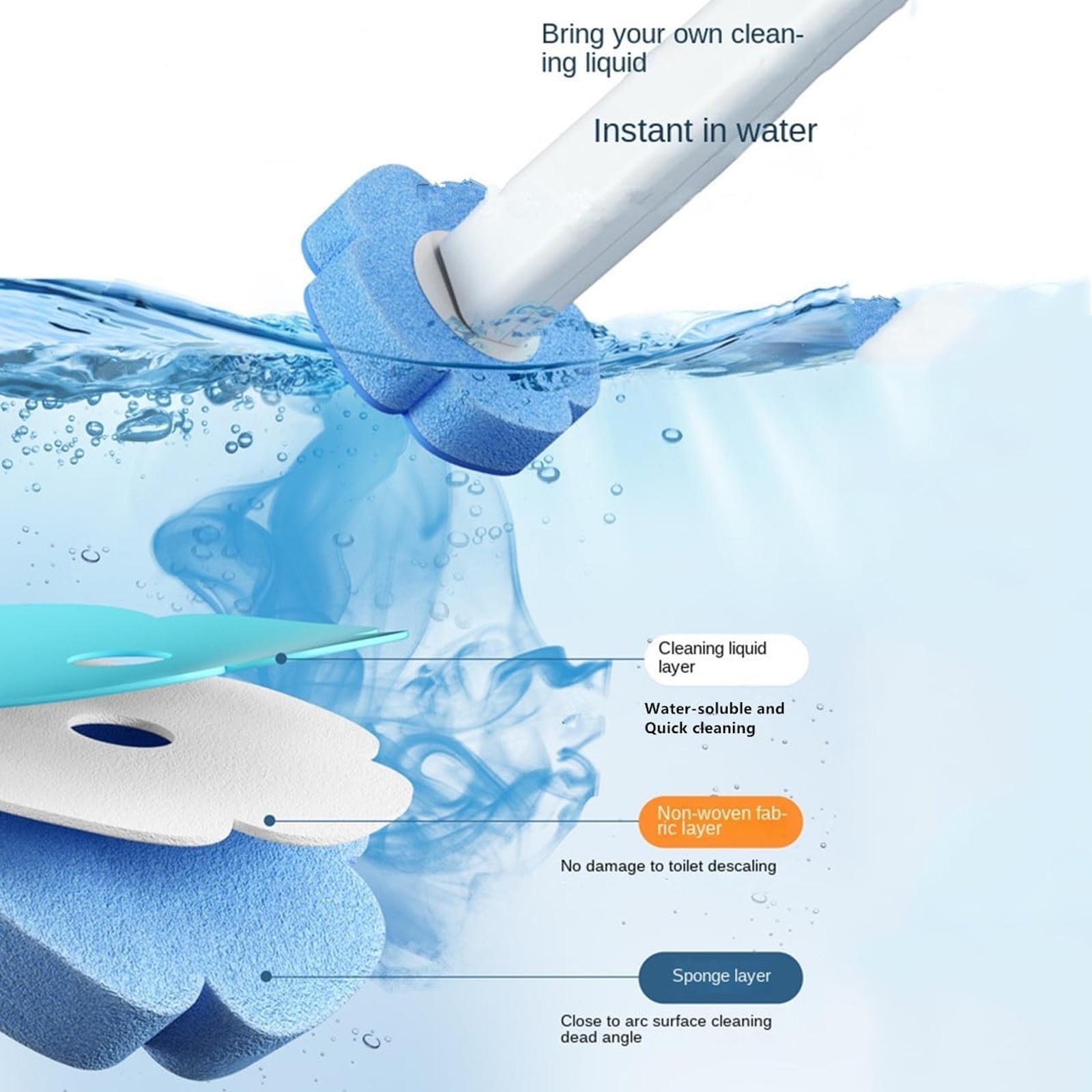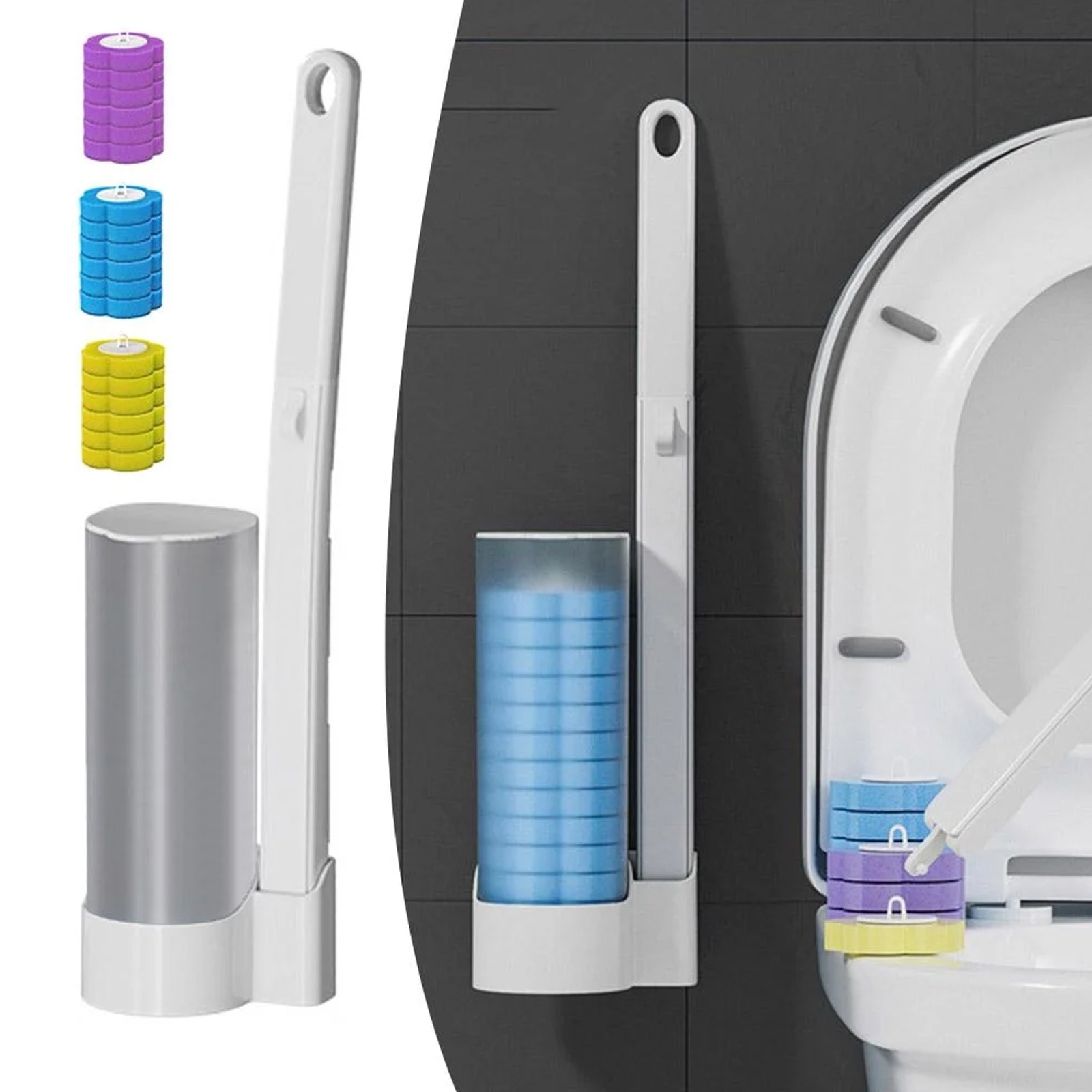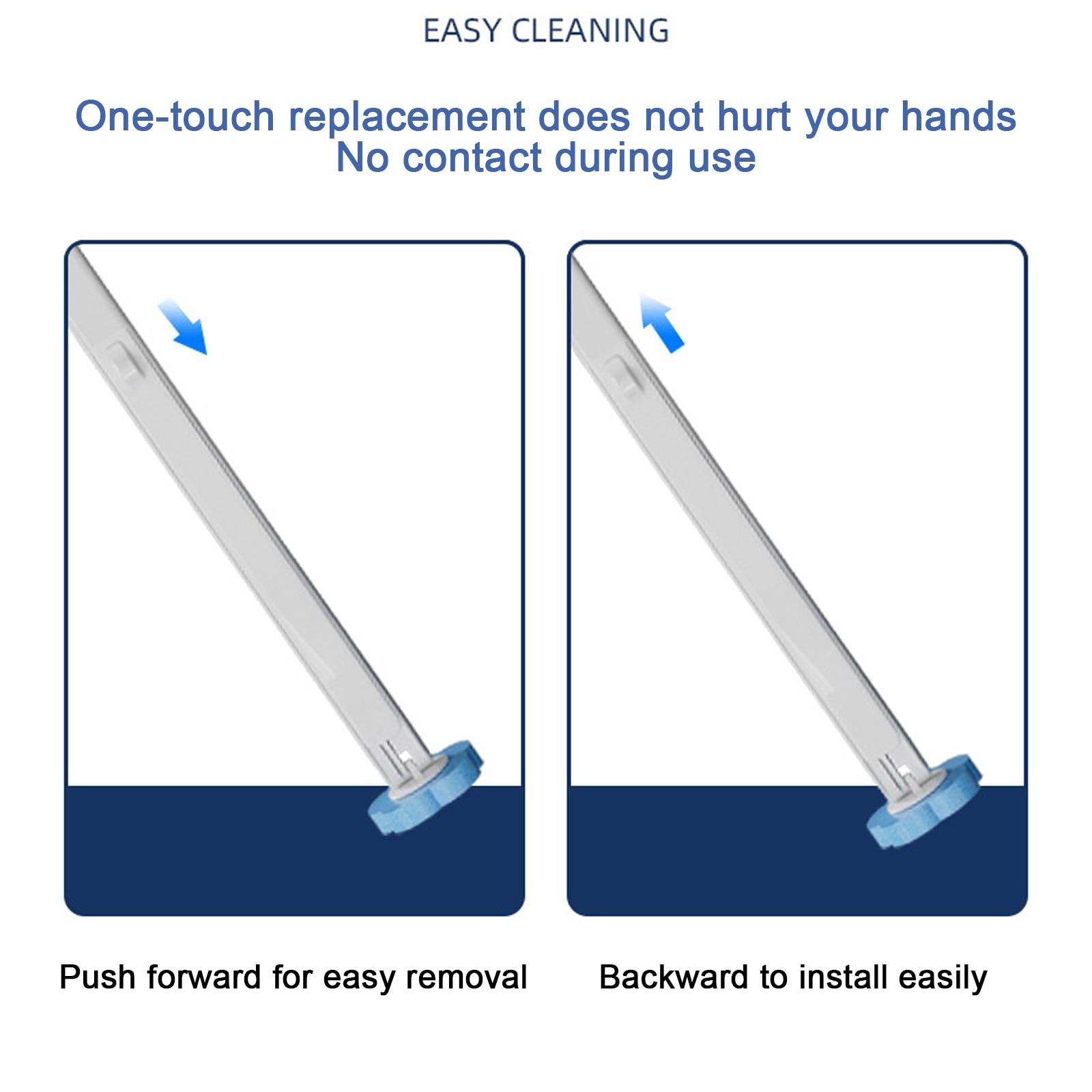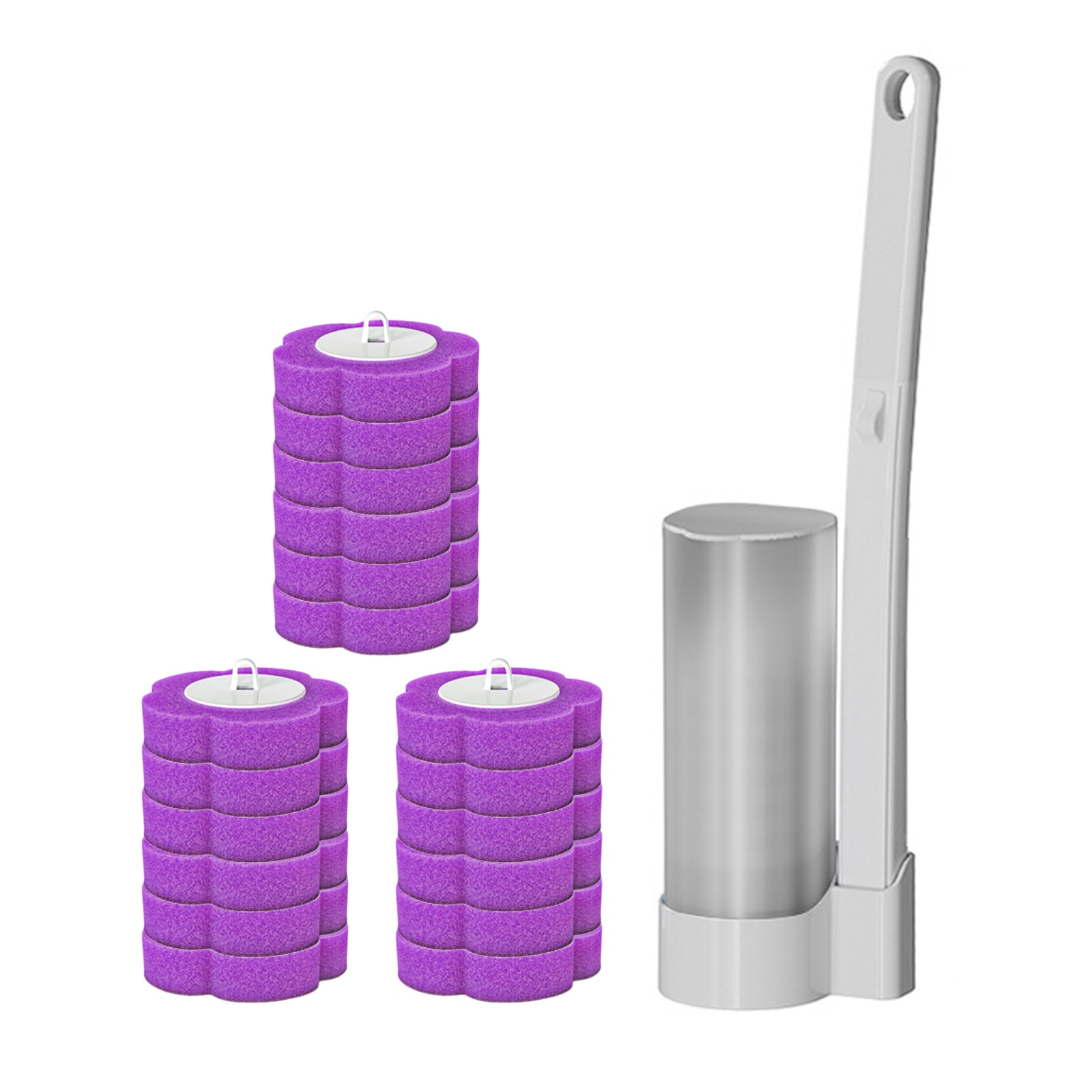 Perie WC pentru toaleta de unica folosinta, 18 capete de schimb inclus, Axroad Mall, Design premium, Montare pe perete, Maner lung, ABS/Burete, 40.1 x 10 cm, Alb-violet