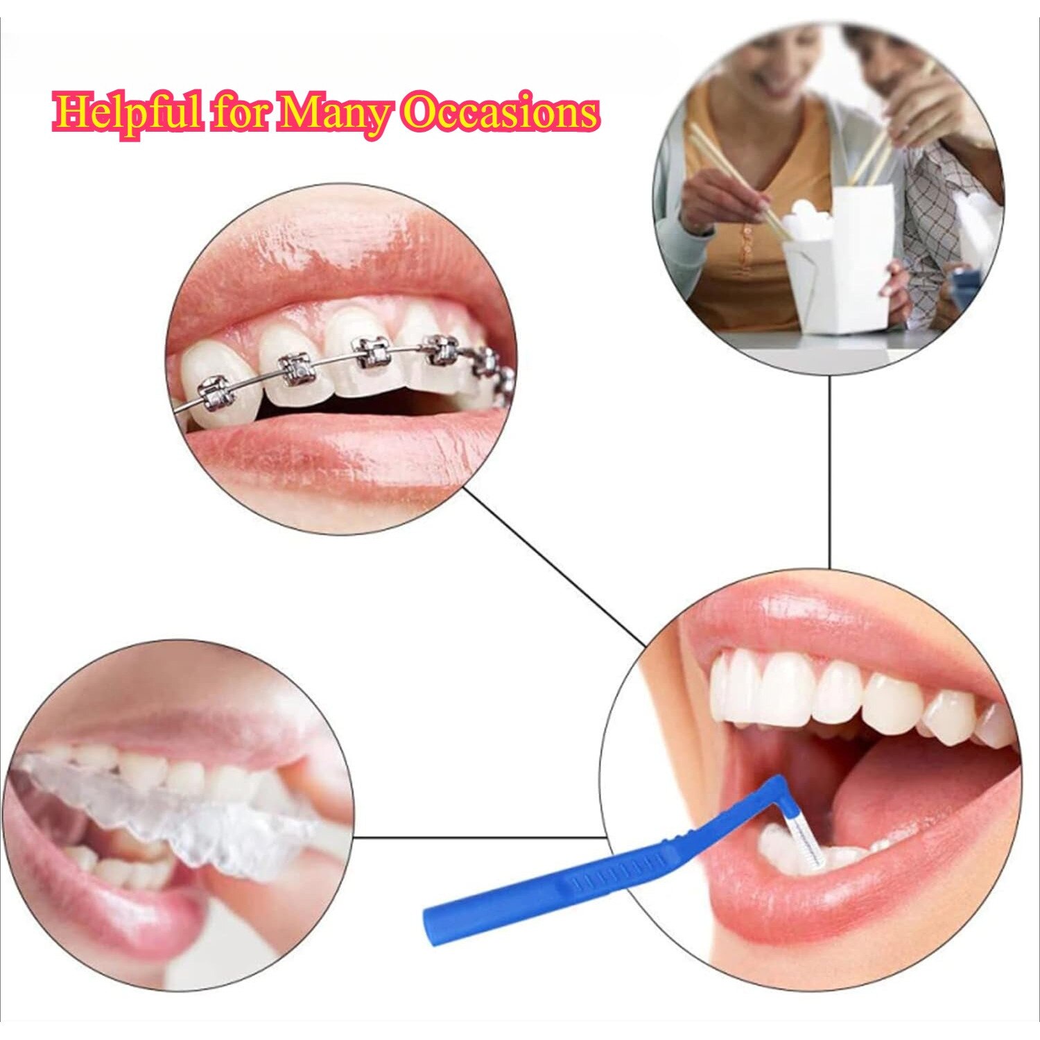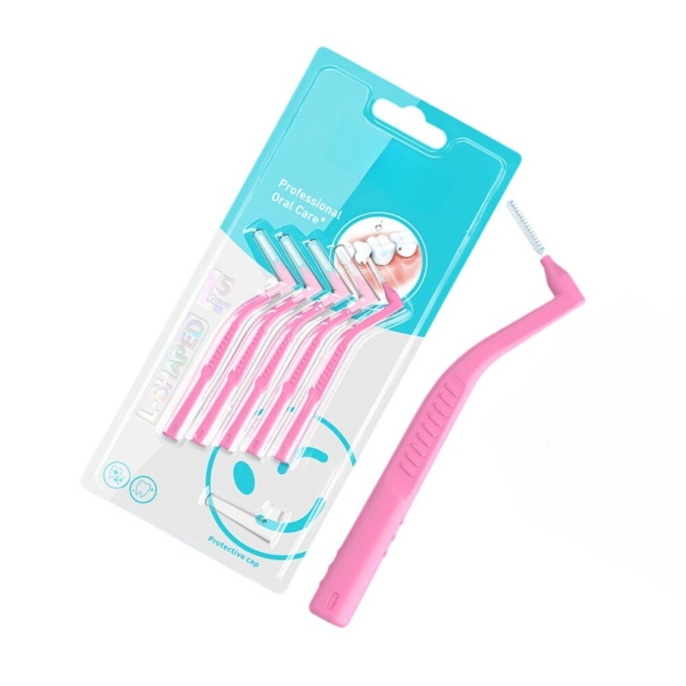 Perii interdentare - 5 bucati, Peri din nylon, curatare dubla, maner anti-alunecare, reutilizabil, 0.6mm, roz