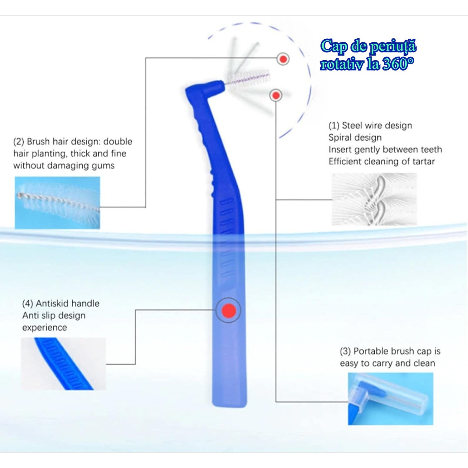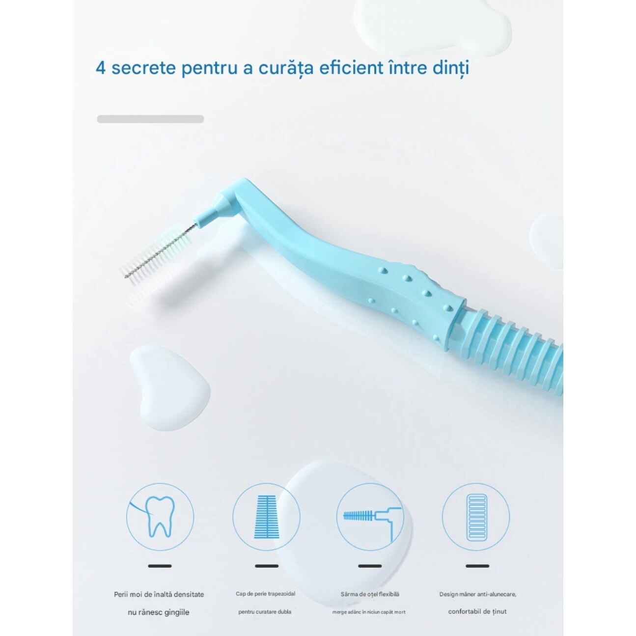 | Functii | Mentinerea igienei dentare Curatarea eficienta a dintilor si gingiilor Igiena orala |