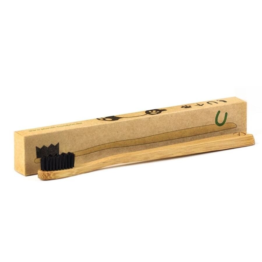 Periuta de dinti din bambus, biodegradabila, pentru adulti, duritate medie, Negru, Planet Bamboo