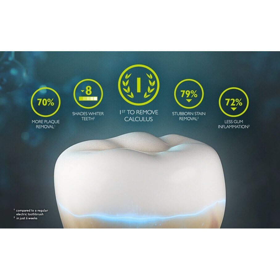 - Indeparteaza cu 70% mai multa placa dentara (fata de o periuta de dinti obisnuita)
