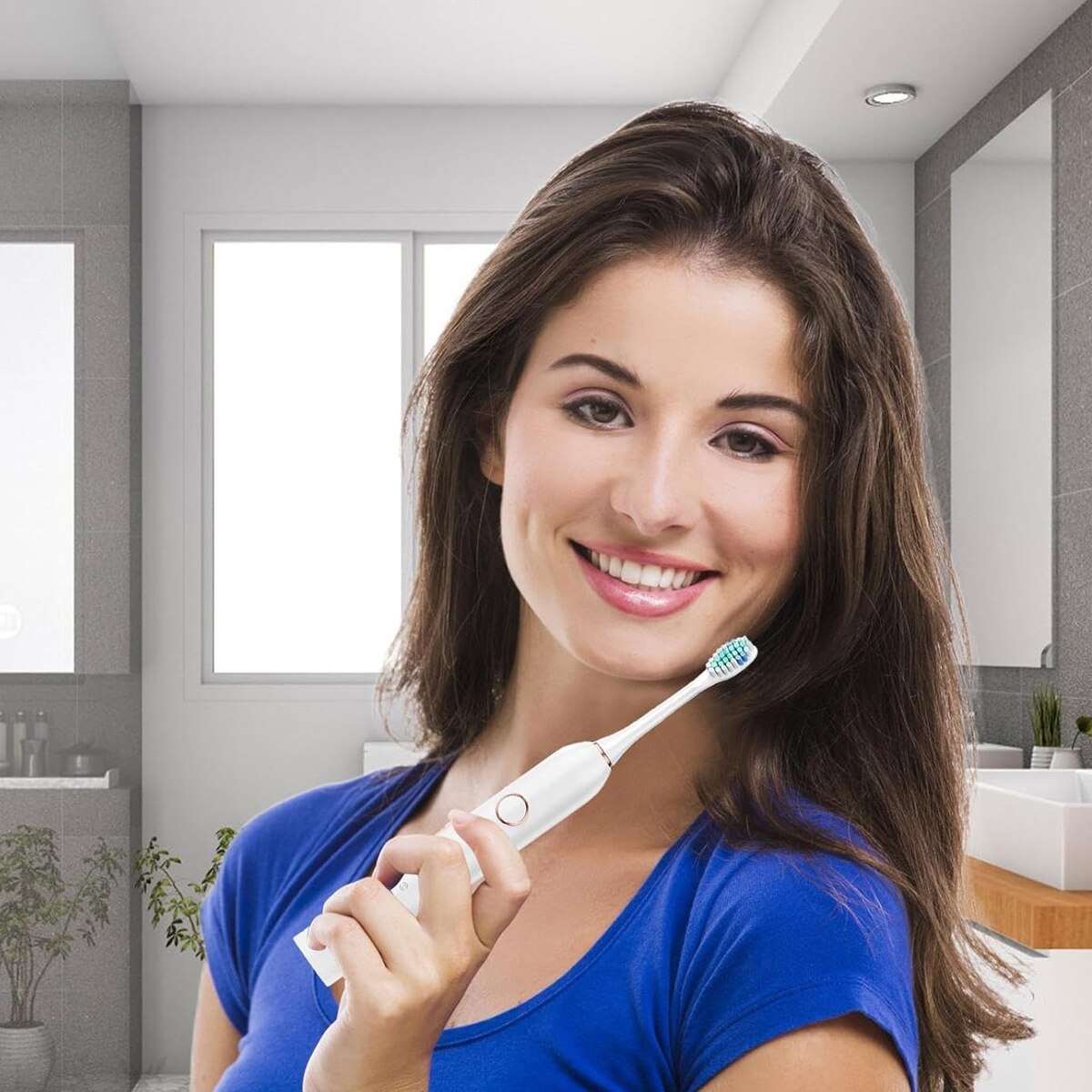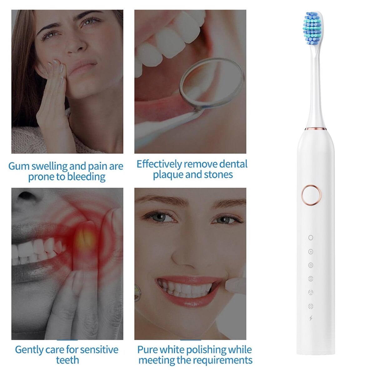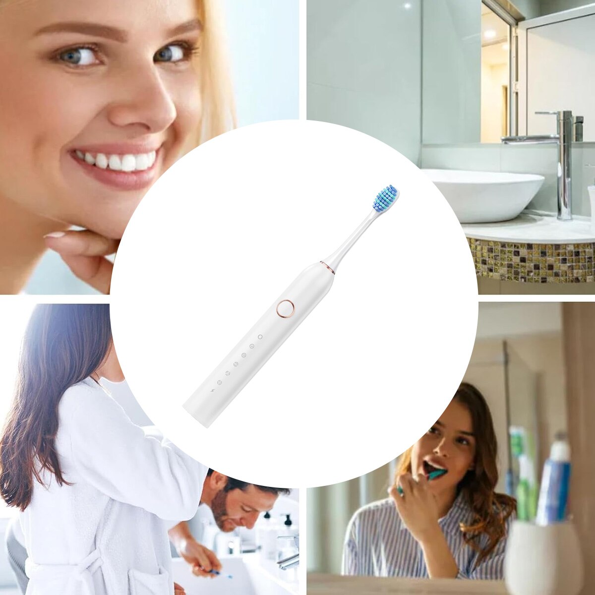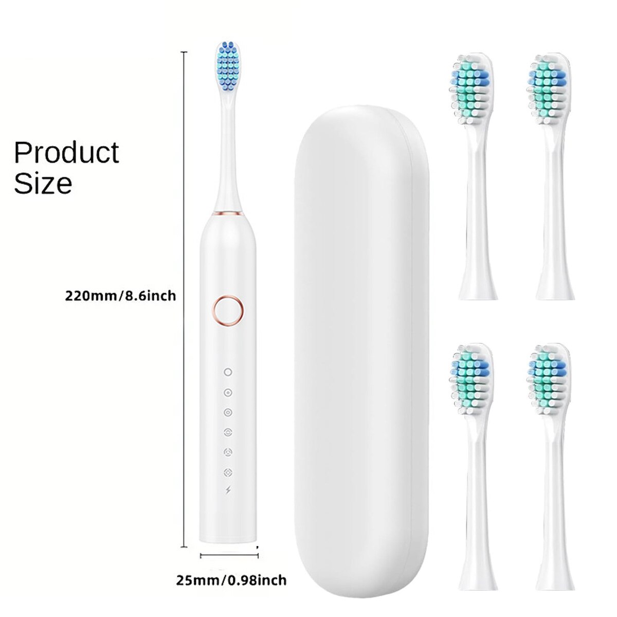 Periuta de dinti electrica Enforose, reincarcabila, 6 moduri de curatare, IPX7, alb, 22x2.5cm, set cu 4 capete de periuta