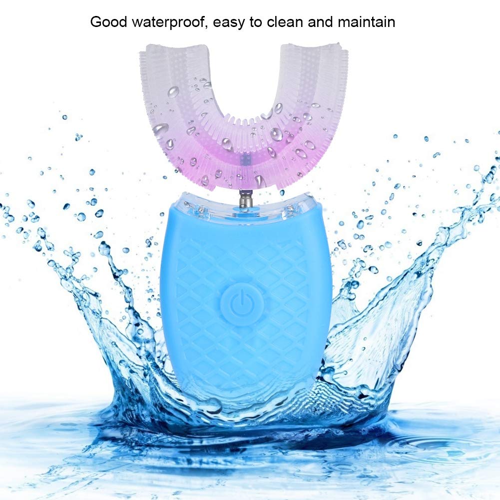 Periuta de dinti electrica, XIUWOO, ABS/Silicon, Forma U, Ultrasunete, IPX7, Incarcare USB, 1500mAh, Albastru