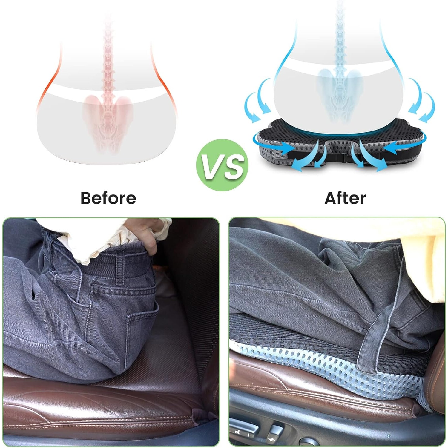 Perna ortopedica pentru masina, suport pentru sezut, design special, 47x43x5cm, multicolor