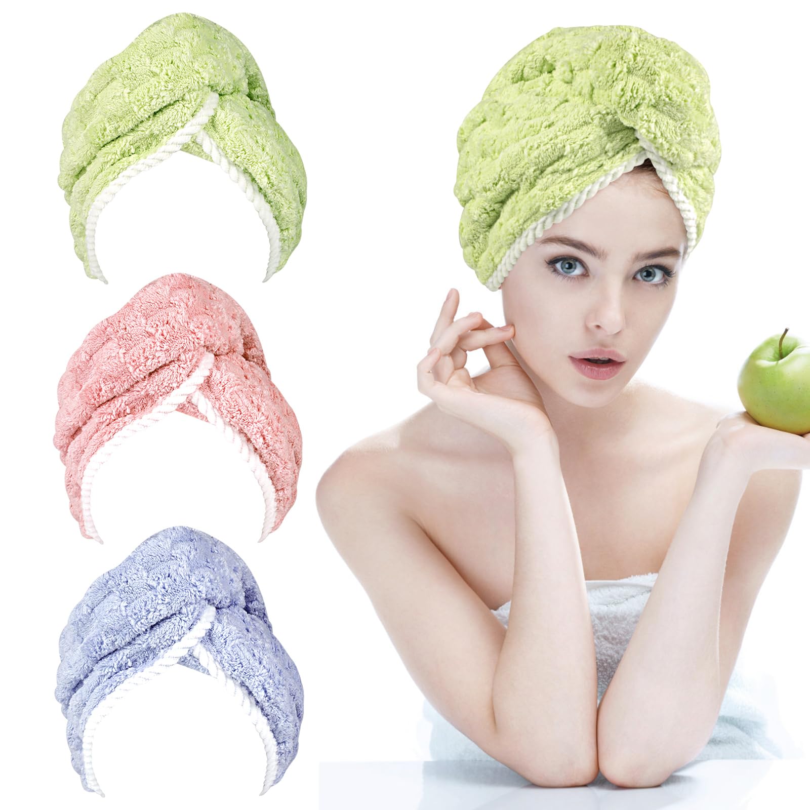 Phogary Turban De Par Din Microfibra, Prosop De Cap, Prosop De Par, Prosop Turban Cu Nasture, Pachet De 3 Prosoape Din Microfibra Ultra Groase Si Moi Pentru Par 65X25 Cm, Prosop De Par Turban Bucle Pentru Femei