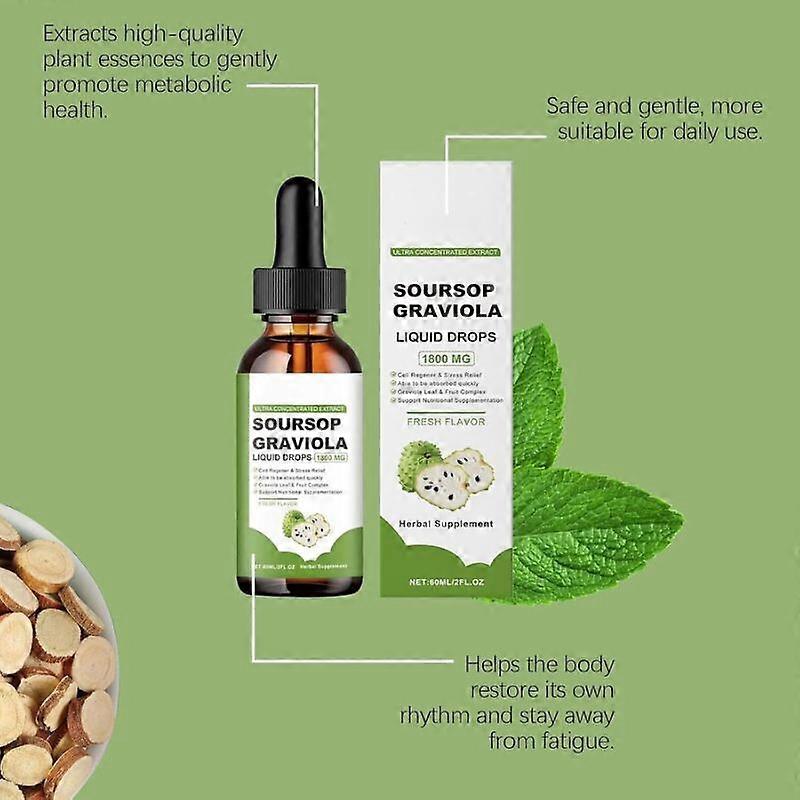 Picaturi lichide Soursop Graviola, 1800mg, 2ml, set 2 bucati, vegan, fara gluten