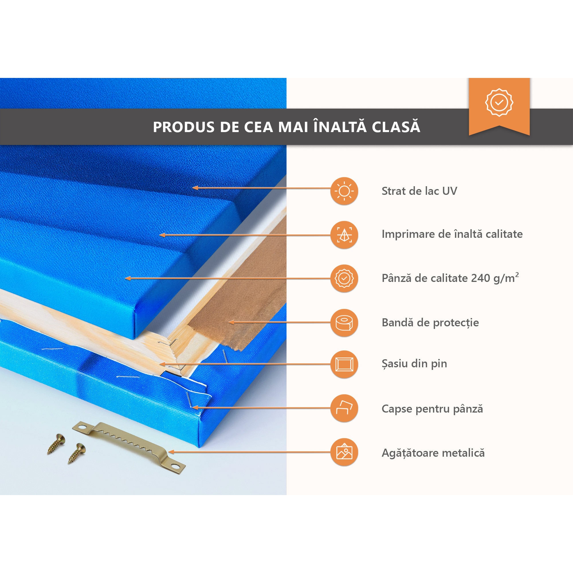 | Material | Panza canvas intinsa pe sasiuri de lemn |