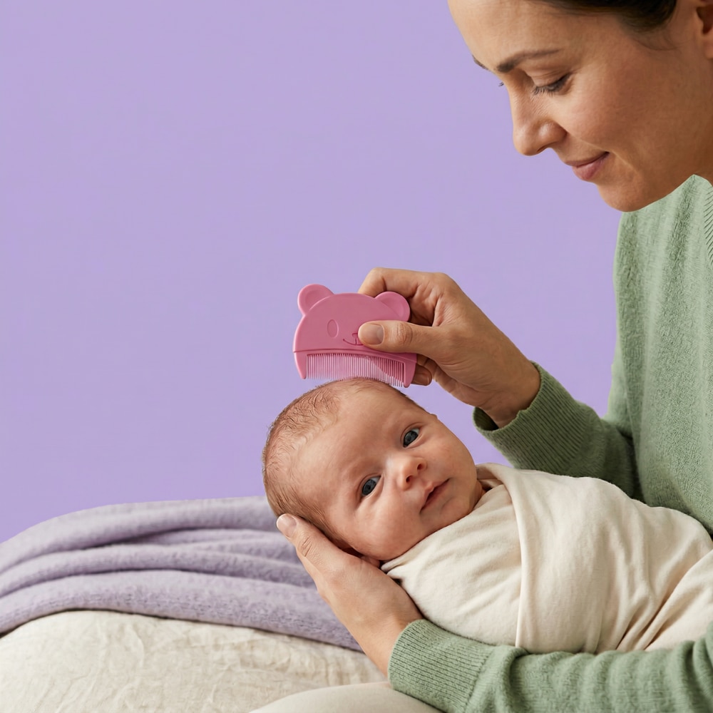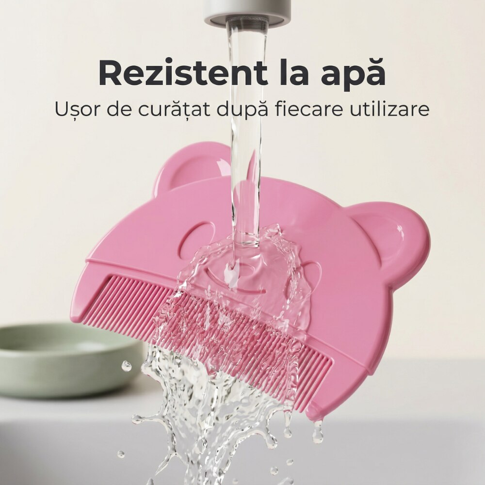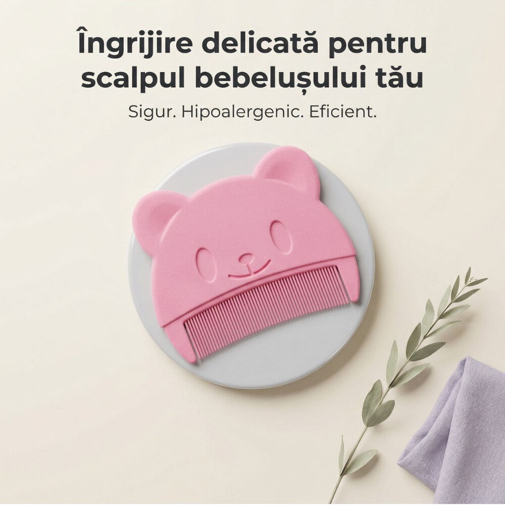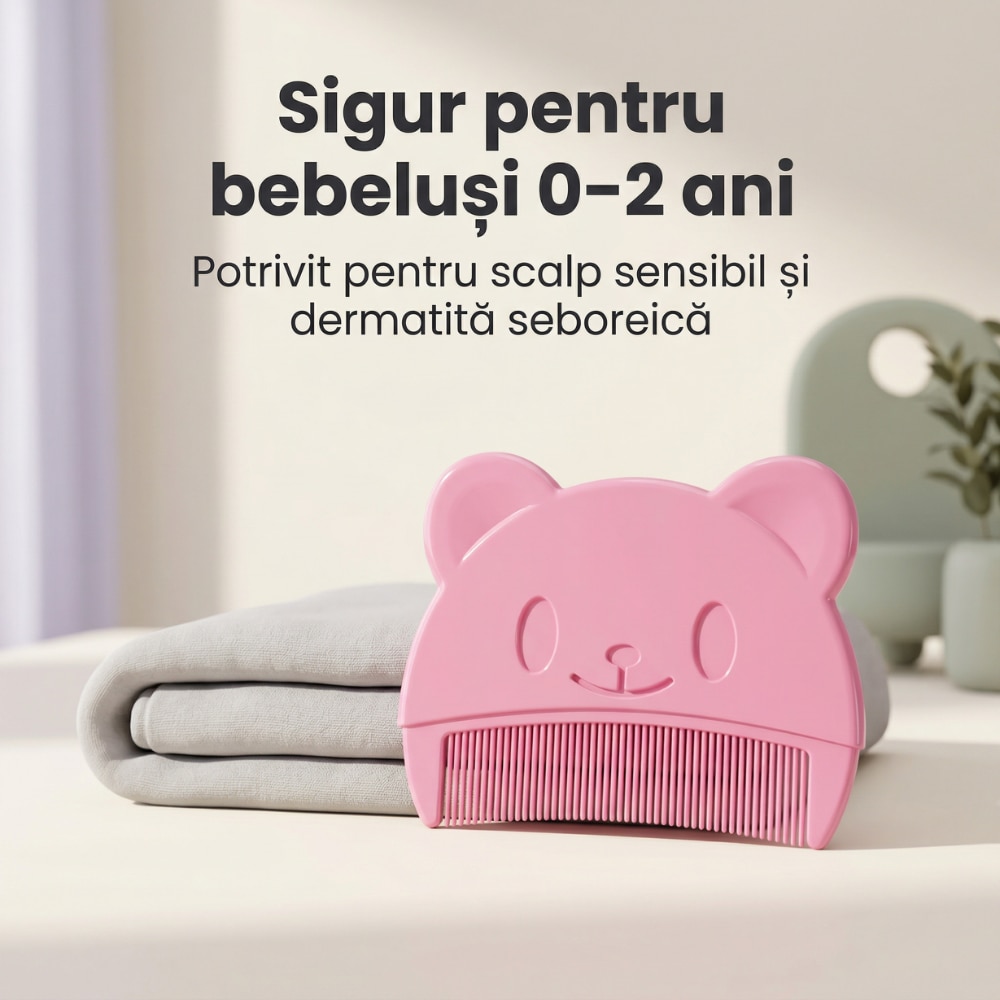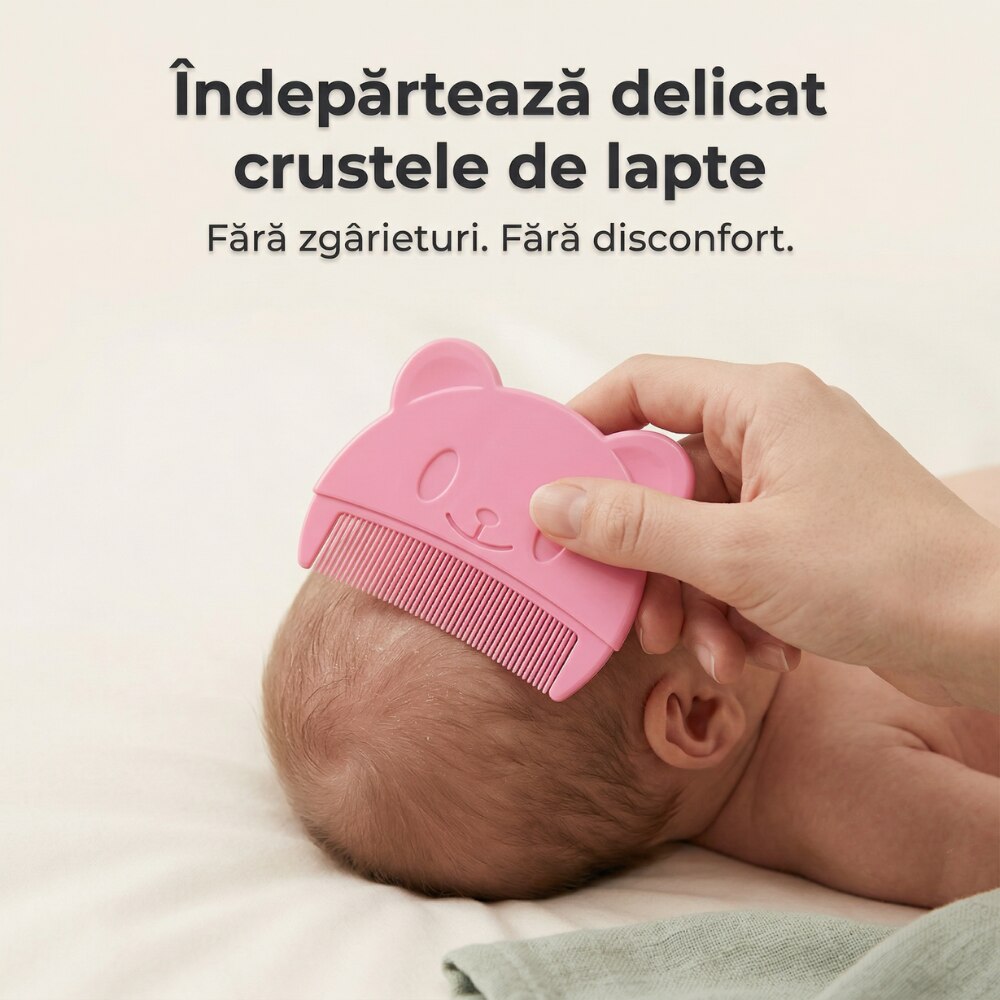 Pieptan Bebelusi Super Trends® Pentru Cruste De Lapte, Pieptan Bebelusi Din Silicon Moale Hipoalergenic, Pieptene Cruste De Lapte Pentru Indepartare Delicata, Pieptan Bebelusi Sigur Pentru Dermatita Seboreica, Perie Scalp Bebe Roz